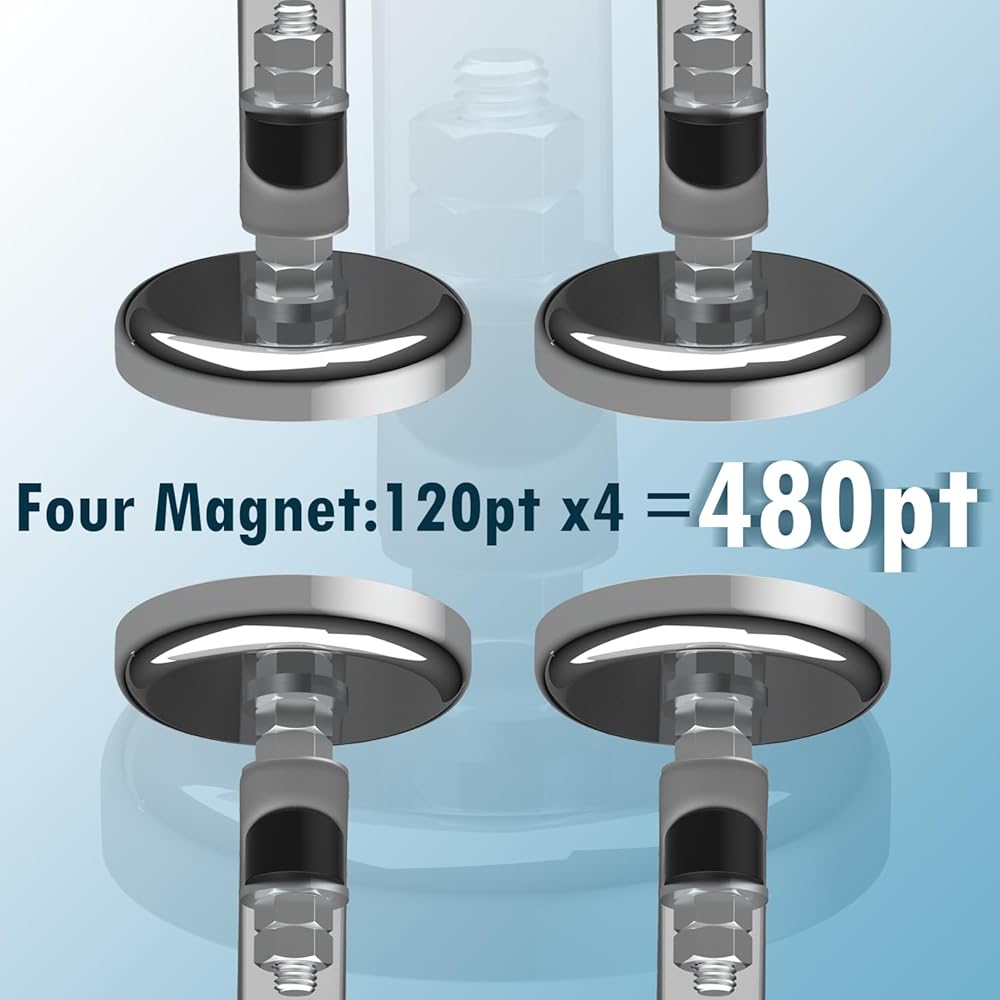 أداء رائع: مغناطيس التثبيت هذا عبارة عن مغناطيس نيوديميوم N42 بقاعدة معدنية بسمك 0.35 بوصة/8.6 مم؛ يمكنها تحمل ما يصل إلى 120 رطلاً من قوة السحب العمودية