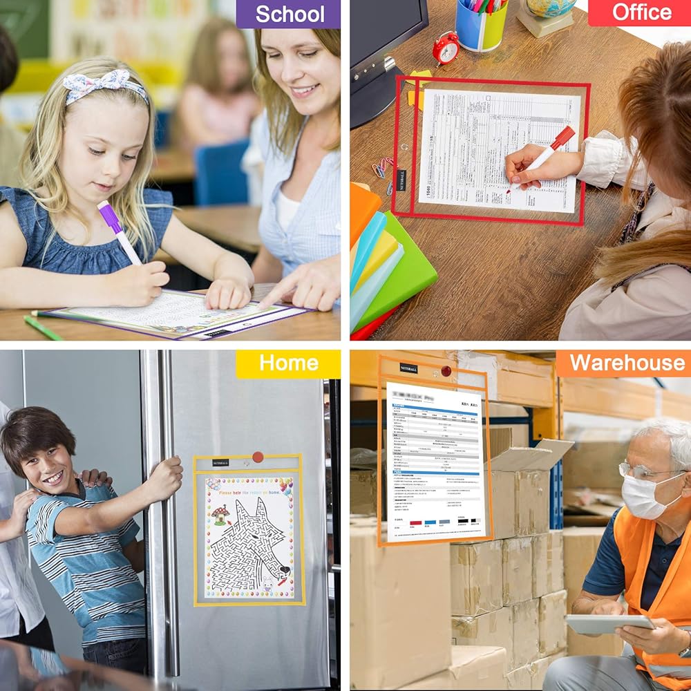 صديقة للبيئة: لا حاجة لطباعة نفس الورقة عدة مرات، تسمح لك أكمام واقي الجيب بالكتابة والمسح على كلا الجانبين، مما يوفر الورق والوقت والمال. مناسبة للمكتب والمنزل والفصول الدراسية وتنظيم المدرسة.