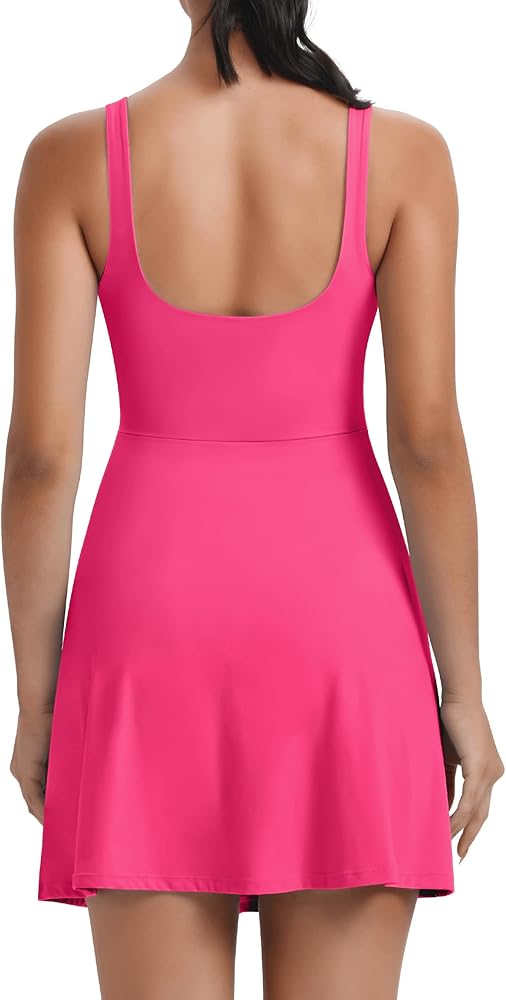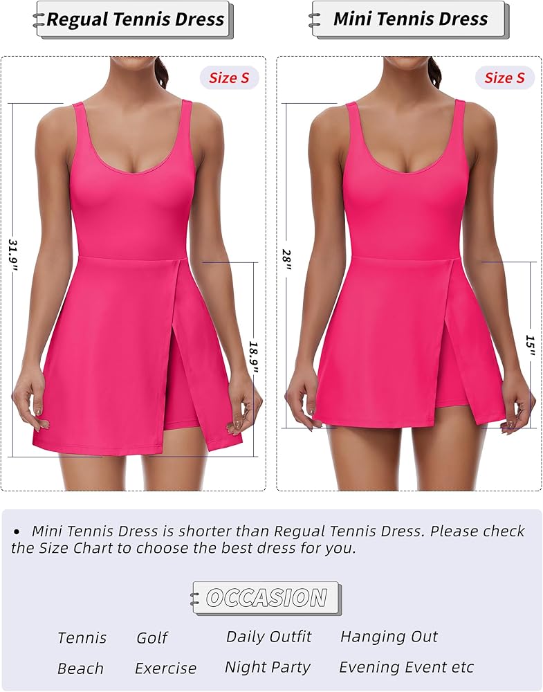 【التصميم】فستان تنس مع شورت داخلي وحمالة صدر، فساتين قصيرة للسيدات، فستان رياضي برقبة على شكل حرف U، فستان جولف بفتحة جانبية، شورت مدمج مع جيب جانبي واحد، فستان للتمرين بدون أكمام، فساتين صيفية قصيرة