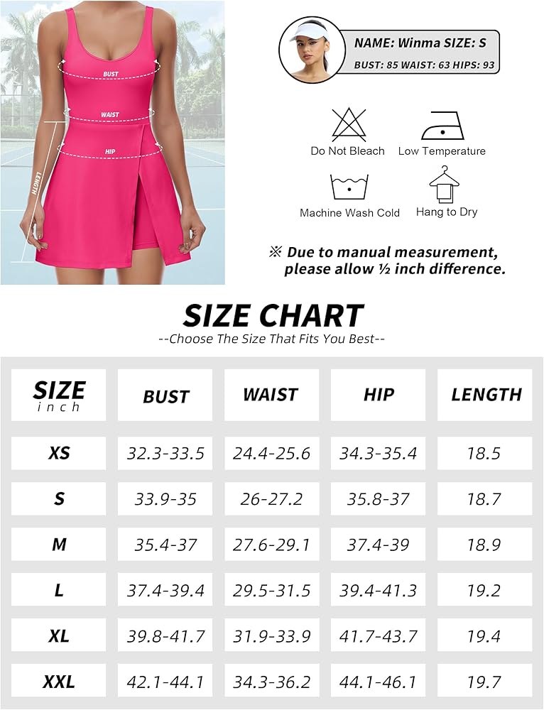 【فساتين صغيرة متوهجة】على عكس العديد من فساتين الجولف للسيدات، فإن فساتين الجولف الصغيرة الخاصة بنا بطول أعلى من الركبة، مما يجعلها جذابة على ساقيك وتعبر عن جاذبيتك. كما أنه يساعد على زيادة مرونة الحركة، مما يسمح لك بلعب التنس بحرية أكبر. يرجى التحقق من جدول المقاسات لاختيار أفضل فستان لك