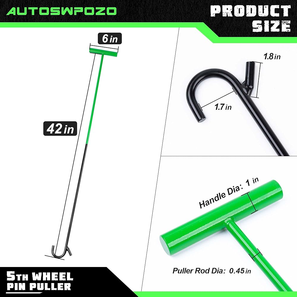【تصميم محسّن】 خطاف سحب العجلة الخامسة مقاس 42 بوصة أطول وأكثر سمكًا وأقوى من خطاف سحب العجلة الخامسة 32 بوصة. والتصميم المطور للجزءين القابلين للتقسيم، مريح جدًا للتخزين في صندوق الأدوات أو الكابينة، وسهل الحمل.