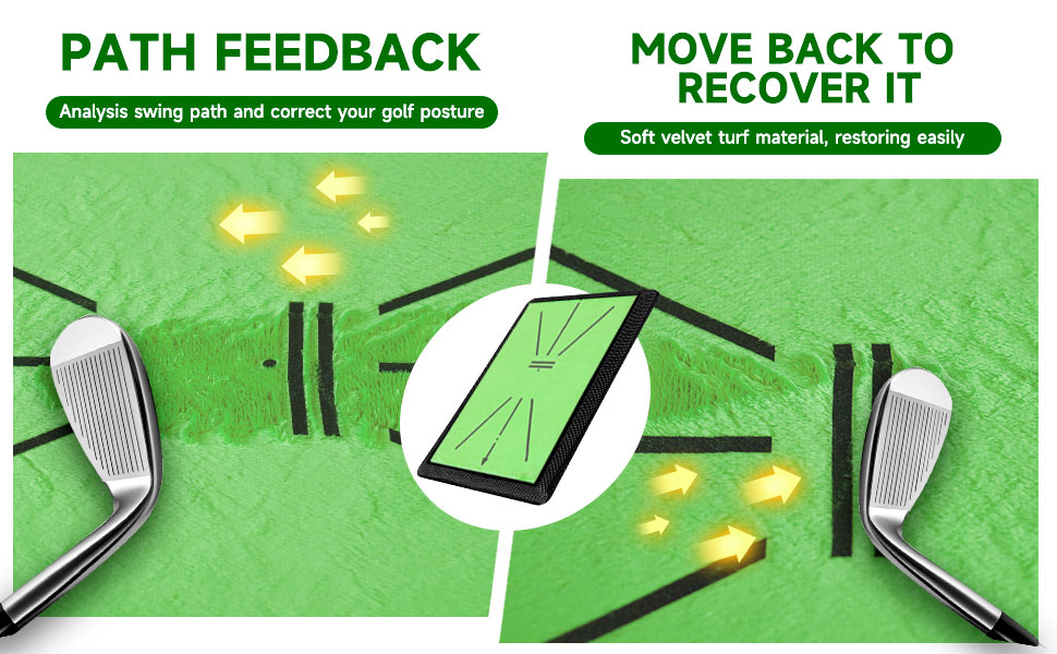 【مادة ممتازة】حصيرة تدريب الجولف مصنوعة من مادة العشب المخملية عالية الجودة، وهي متينة وتتتبع مسار التأرجح الخاص بك بشكل أكثر وضوحًا، ويمكن تحريكها بسهولة مرة أخرى لاستئناف الاستخدام.