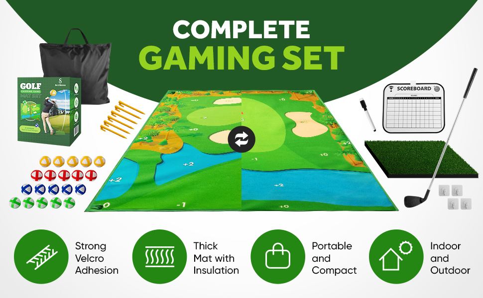 استكشف التحديات ذات الوجهين: تتميز مجموعة قطع الجولف من SuiMono ببساط مزدوج الجوانب متعدد الاستخدامات، مما يوفر تجربة ملعب جولف ديناميكية وواقعية للاعبين المتحمسين الذين يبحثون عن مغامرة جولف داخلية وخارجية.