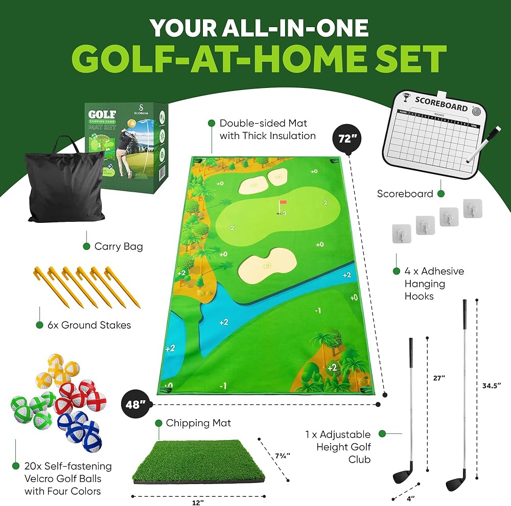 هدية مثالية لعشاق الجولف: توفر حصيرة لعبة Velcro Golf Chipping Game طريقة ممتعة وتفاعلية لمحبي الجولف لممارسة مهاراتهم القصيرة في اللعب في راحة منزلهم، مما يجعلها هدية مدروسة ومسلية لأي متحمس للجولف. هدية رائعة لعيد الأب، أو الكريسماس، أو عيد ميلاد الأب أو الابن.