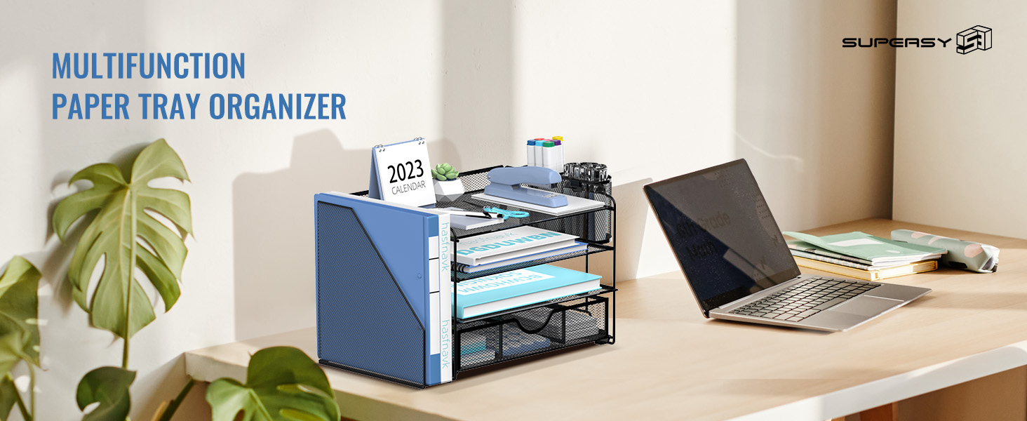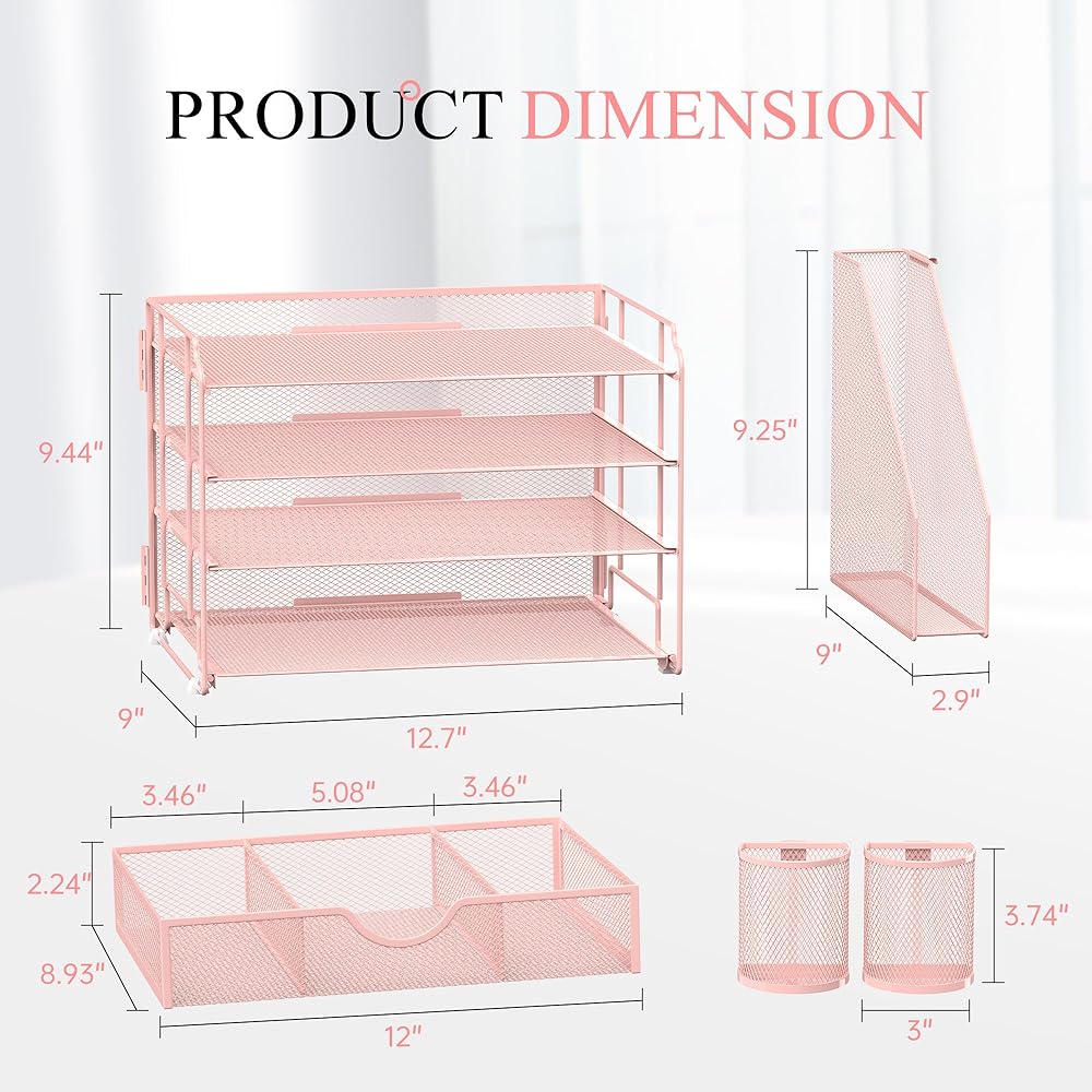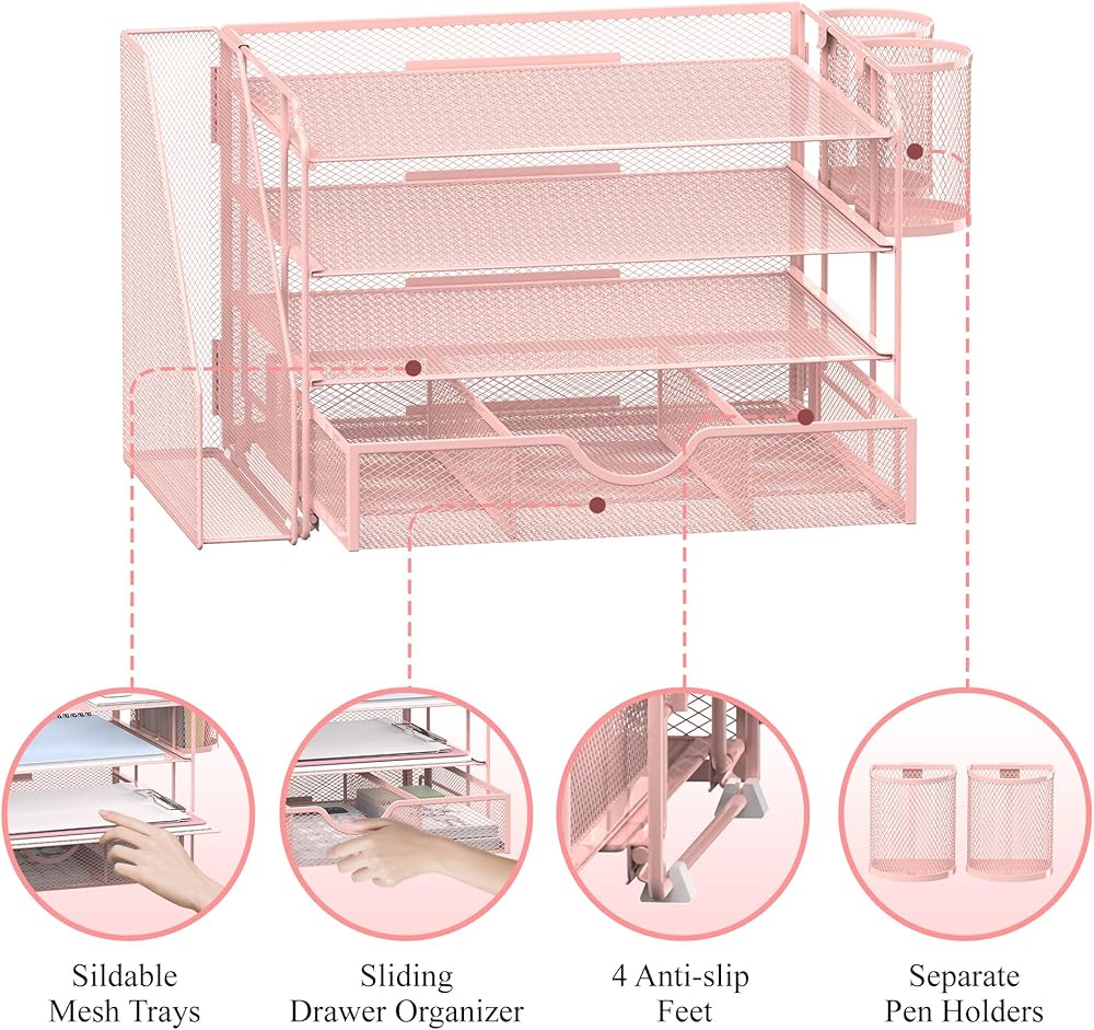 [مادة معدنية فاخرة] منظم الملفات هذا للمكتب مصنوع من هيكل معدني شبكي قوي، والذي يتميز بسطح أملس يجعل العمل ممتعًا. مزود بـ 4 أقدام غير قابلة للانزلاق، منظم سطح المكتب Supeasy يصعب لفه، وقدرة التحمل قوية.