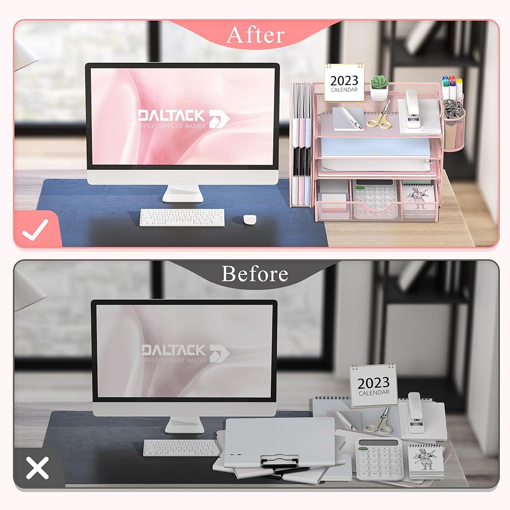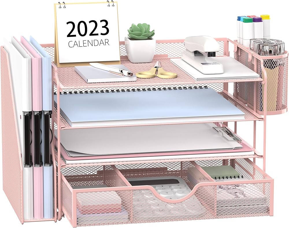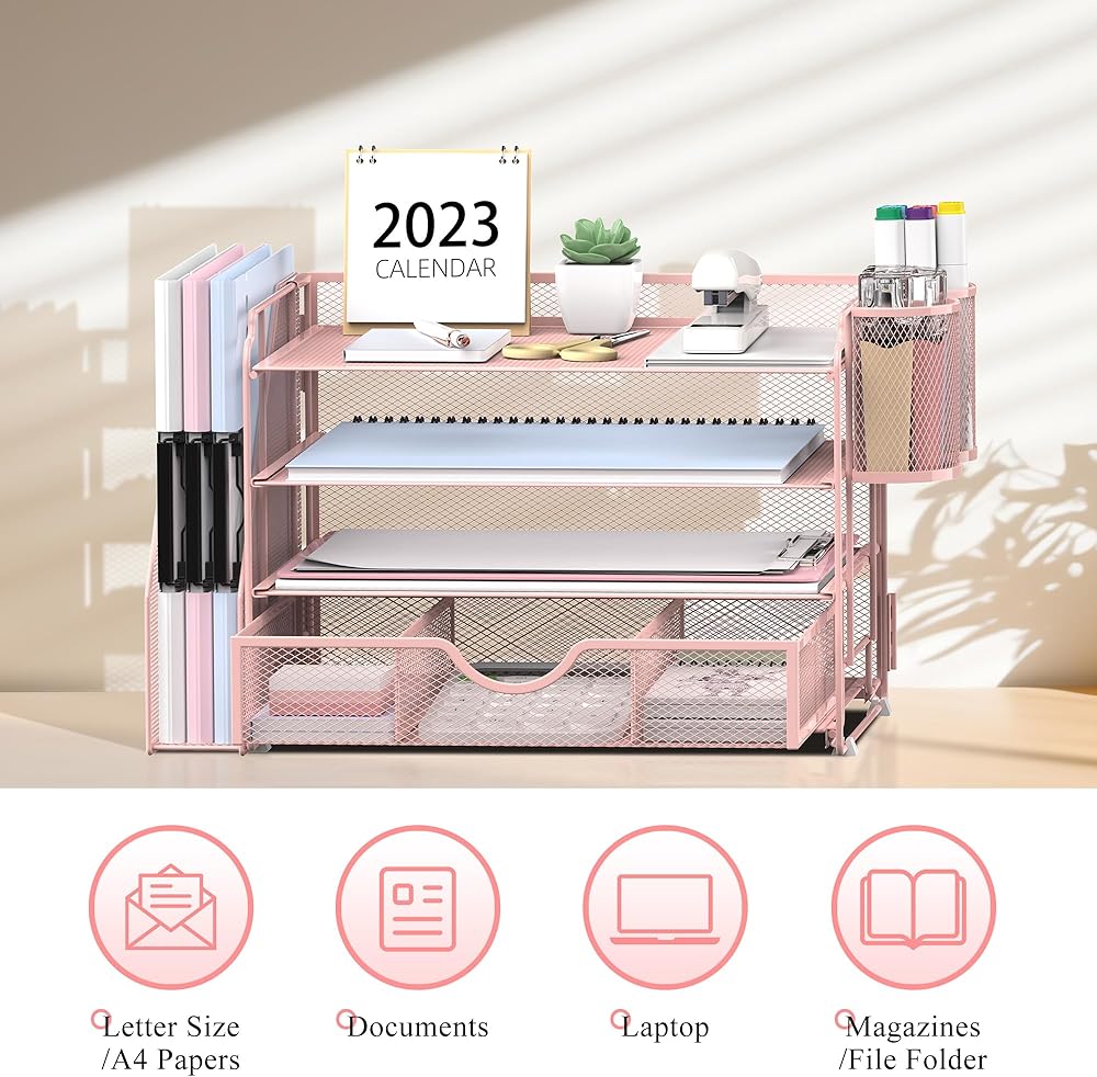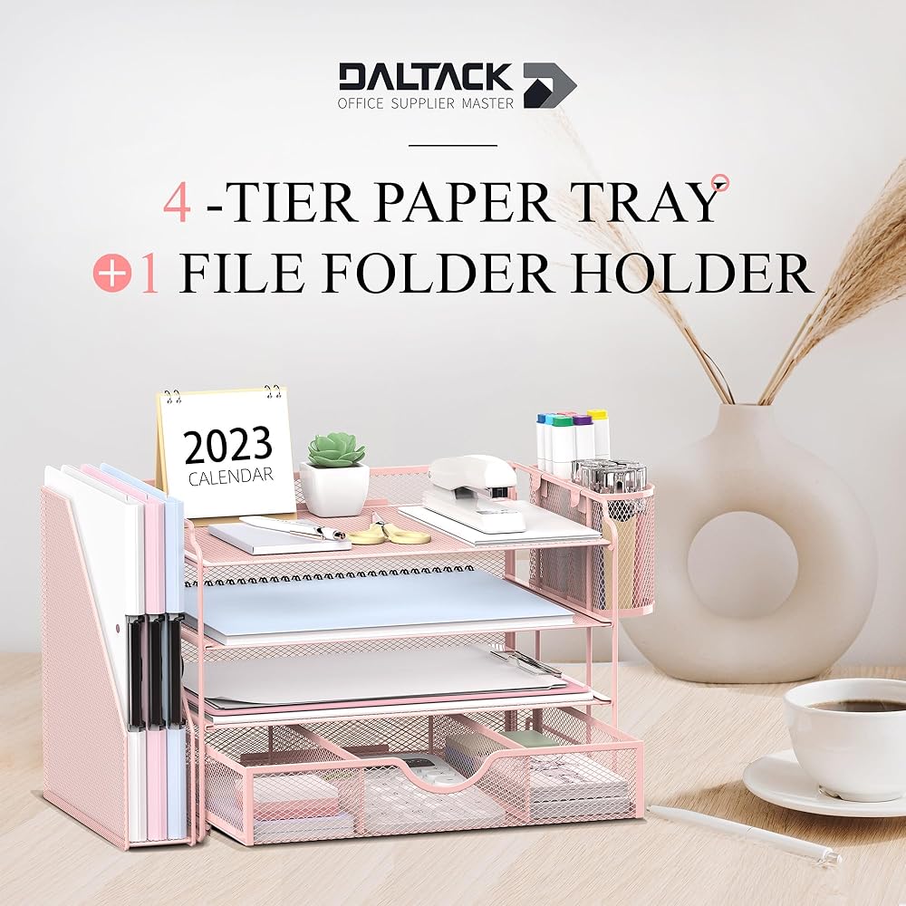 [مادة معدنية فاخرة] منظم الملفات هذا للمكتب مصنوع من هيكل معدني شبكي قوي، والذي يتميز بسطح أملس يجعل العمل ممتعًا. مزود بـ 4 أقدام غير قابلة للانزلاق، منظم سطح المكتب Supeasy يصعب لفه، وقدرة التحمل قوية.