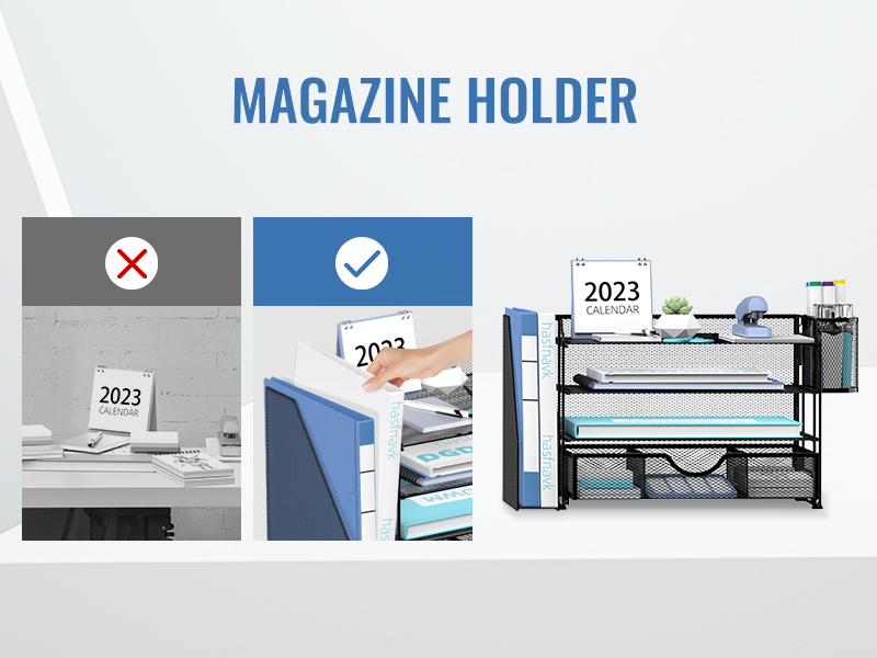 [منظم ورق متعدد الوظائف] الحجم المثالي: 16.2*9.44*9 بوصة. تم تصميم حامل الملفات العمودي لتخزين المجلدات أو المجلات القياسية. يحتوي منظم الورق لدرج الرسائل على 4 أرفف مكتبية، مثالية للكتب والمستندات والرسائل والوسادات غير المرتبكة. يمكن تنظيم جميع ملحقات المكتب بواسطة منظم الأدراج وحاملات الأقلام المعلقة، وهي كبيرة بما يكفي لاستيعاب الأقلام وأقلام الرصاص والمقص وما إلى ذلك.