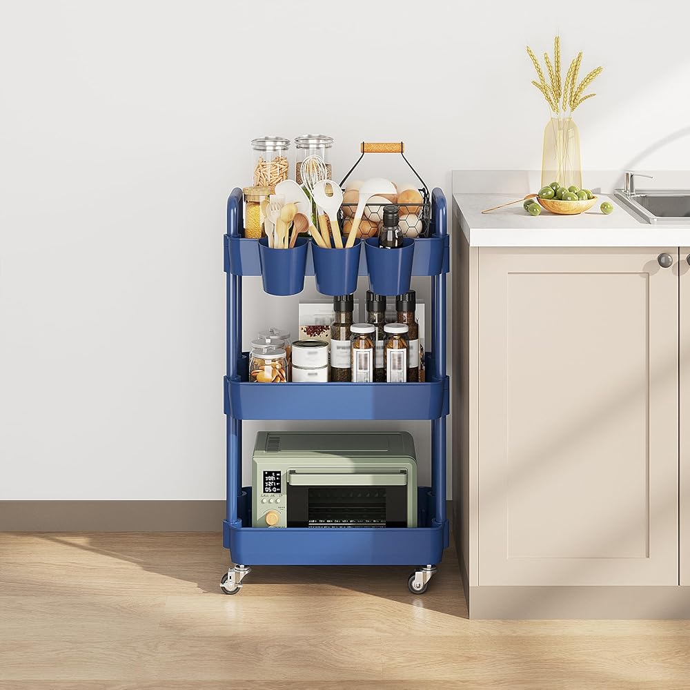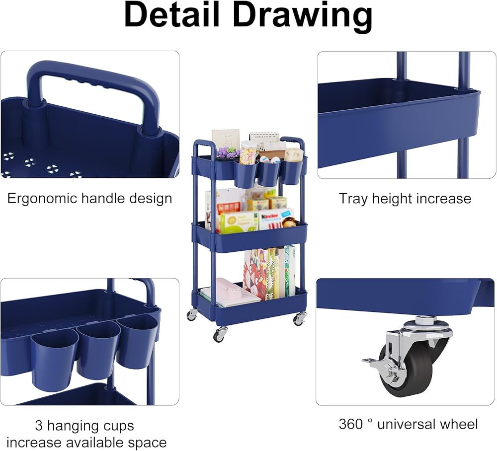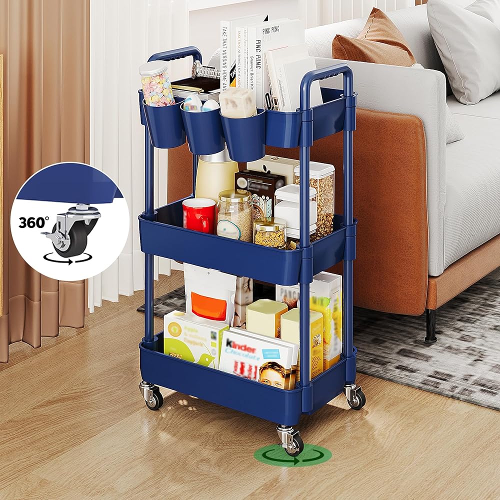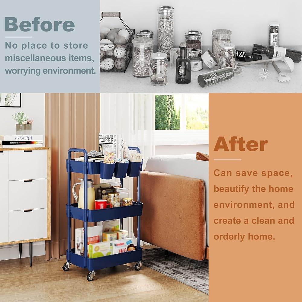 【تخزين متعدد الوظائف】عربة التخزين الدوارة مع مساحة تخزين كبيرة لحمل مجموعة متنوعة من العناصر بسهولة مثل الأنسجة والمجلات والوجبات الخفيفة أو مستحضرات التجميل. مكان مثالي في أي ركن من أركان غرفة النوم والمطبخ والمرحاض والمكتب والمزيد.