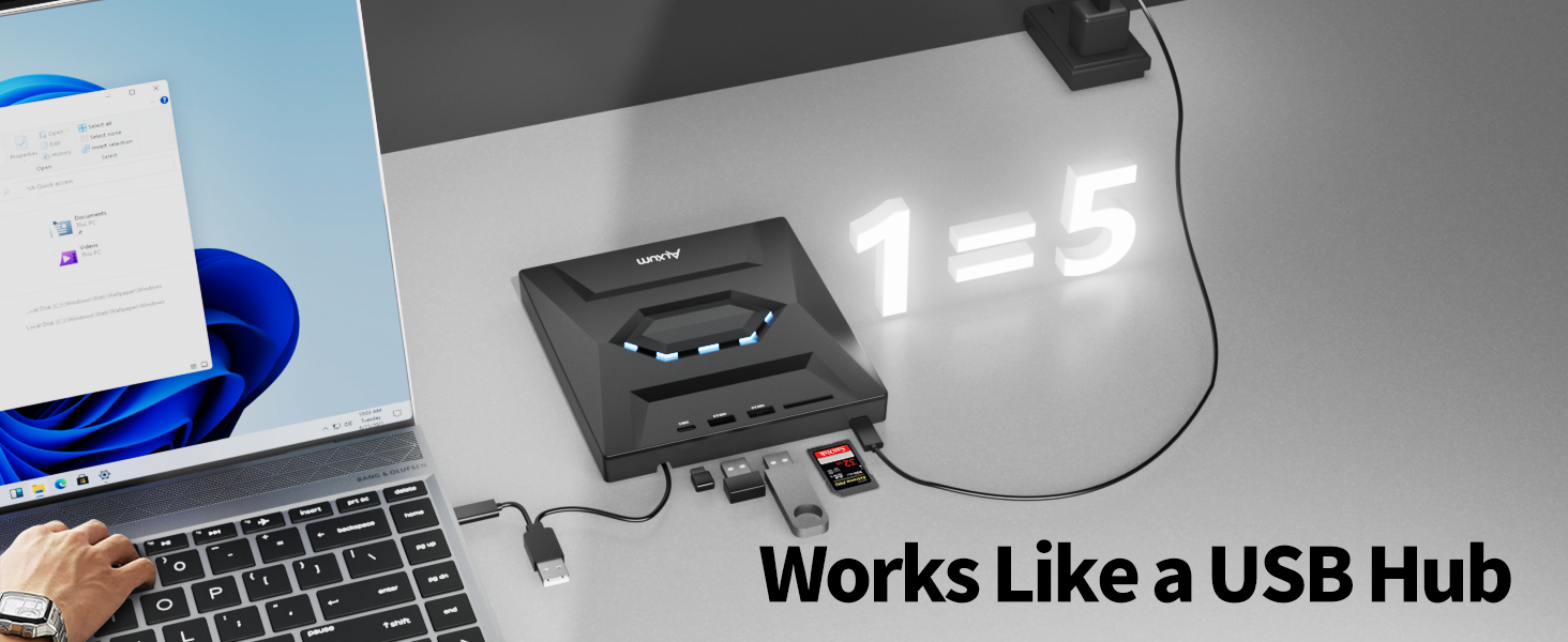 وظائف متعددة مريحة: يتجاوز محرك الأقراص المضغوطة/أقراص DVD الخارجي لدينا مجرد تشغيل الأقراص المضغوطة وأقراص DVD. يأتي مع فتحة بطاقة SD/TF منفصلة، ومنفذ USB 3.0 A، ومنفذي USB 2.0 A/C، مما يوفر لك خيارات إضافية لتوصيل ونقل البيانات من أجهزة متعددة في وقت واحد. وهذا التنوع يجعله خيارًا ممتازًا لأولئك الذين يحتاجون إلى اتصال بأجهزة متعددة أثناء التنقل. (لا يمكن قراءة بطاقة SD وبطاقة TF في نفس الوقت)