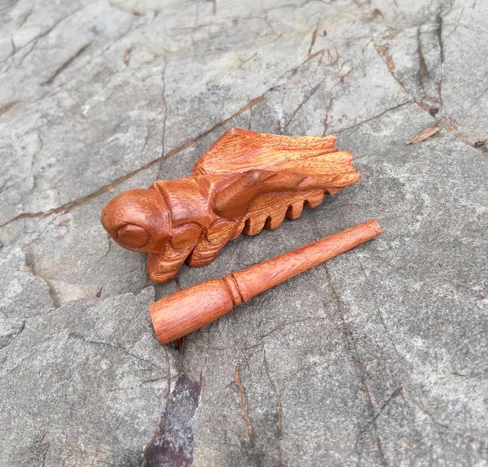 Cricket - Rubbing its spine with the wooden stick up and down motion producing realistic croaking sounds, the frog is the high pitch of the sound is produced.