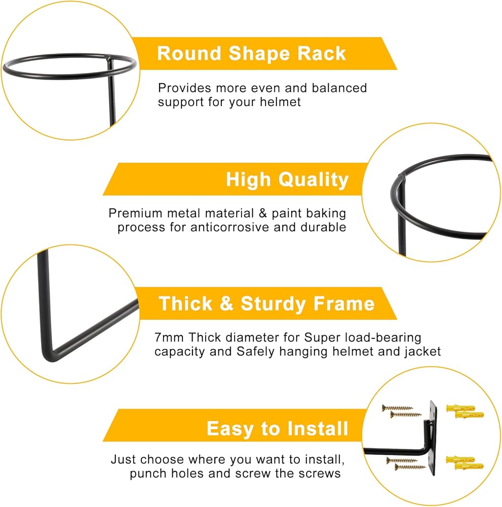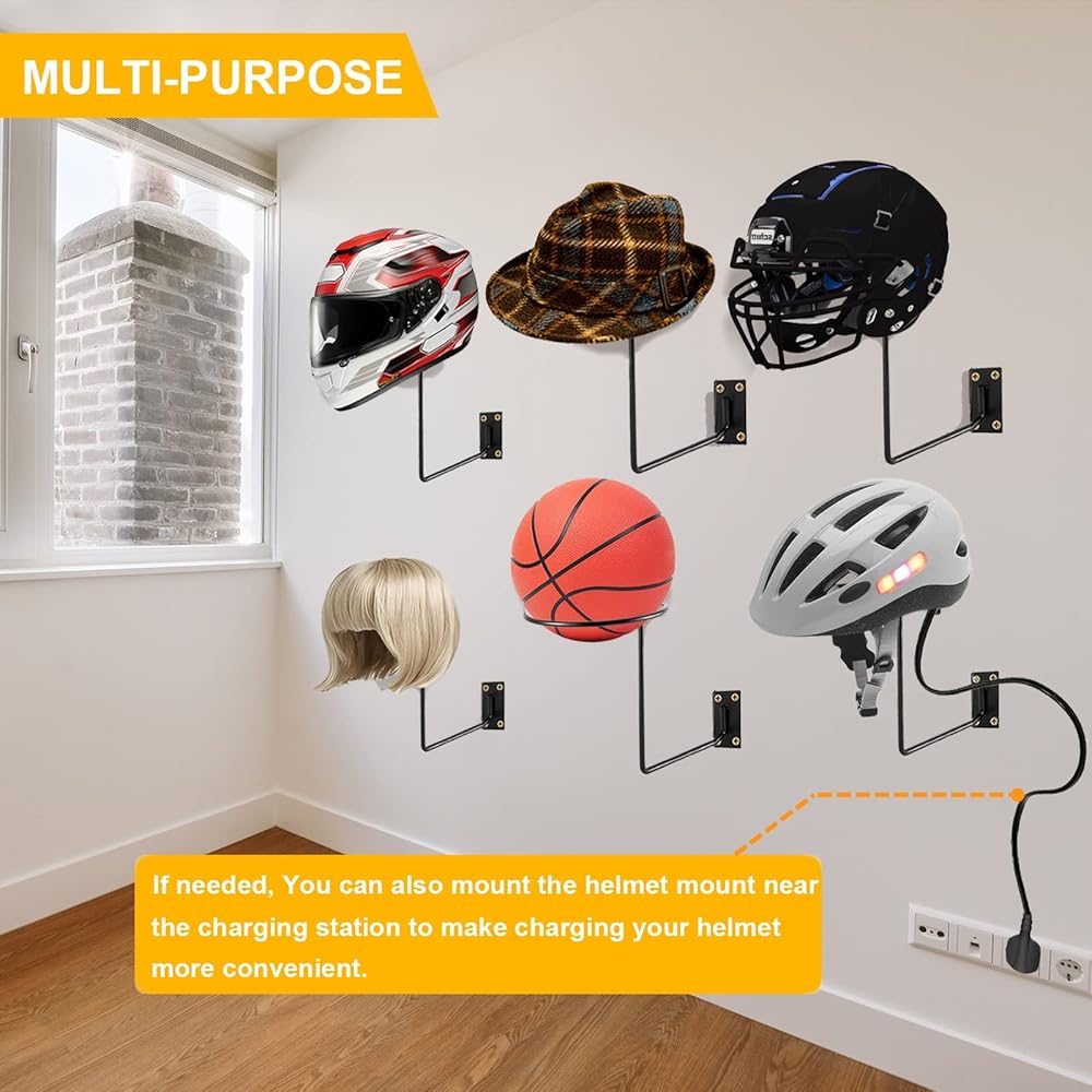 • مجموعة واسعة من الاستخدامات: يمكن وضع حاملات الخوذة لتعليق خوذات الدراجات النارية، وخوذات البيسبول، وخوذات الدراجات الترابية، وخوذات الدراجات، وخوذات كرة القدم، وقبعات رعاة البقر، والمعاطف، والسترات، وأقنعة الحفلات، وحتى كرات السلة!