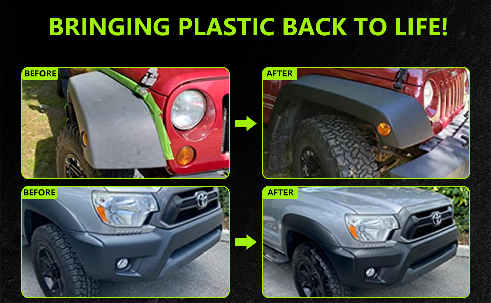 آمن على جميع الأسطح: تركيبتنا الخاصة تعتمد على الماء ولن تؤذي أو تتلف أو تجفف المطاط أو الزخرفة أو البلاستيك أو تضر أي طلاء قد تلمسه! آمن للاستخدام على جميع الألوان البلاستيكية والمطاطية! لقد قمنا بصياغة عامل تجديد الأجزاء البلاستيكية خصيصًا لحل المشكلات مع جميع المشكلات الأخرى التي رأيناها في السوق! تستخدم معظم المنتجات المماثلة الأخرى الزيت، الذي يجف بسرعة ويتحلل من البلاستيك والمطاط!