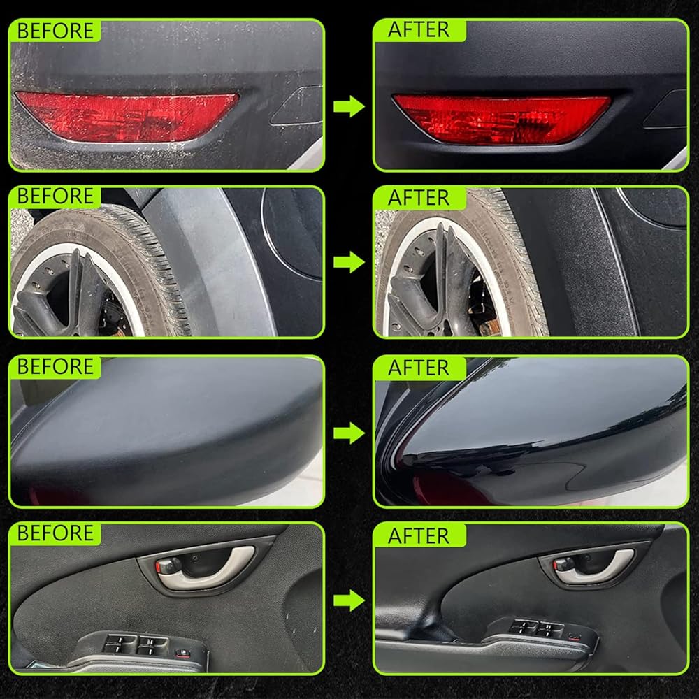 حماية متقدمة: لن يقوم مرمم البلاستيك النهائي للسيارة الخاص بنا فقط بجعل البلاستيك الباهت والزخرفة لامعة - بل سيحمي البلاستيك ويزخرف سيارتك الجديدة! من خلال تطبيق المرمم والواقي الخاص بنا، يمكنك منع التآكل المبكر والتلاشي الناتج عن الأشعة فوق البنفسجية وأوساخ الطريق! تركيبتنا الفريدة هي ضرورة مطلقة في أي ترسانة من لوازم تفصيل السيارات! ستندهش كيف يمكن أن تجعل سيارتك بأكملها تبدو وكأنها جديدة في غضون دقائق!