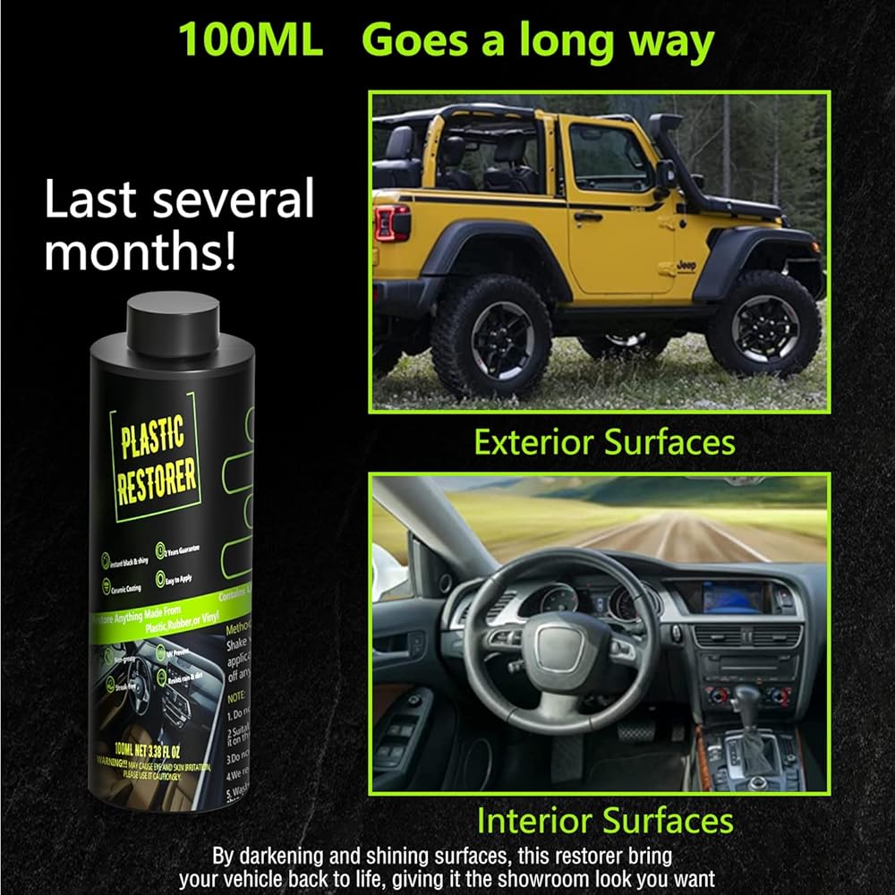 يدوم طويلاً: على عكس العديد من المنتجات الأخرى المتوفرة على الرف، فإن مُرمم البلاستيك والزخرفة النهائي الخاص بنا يدوم لفترة طويلة! في كل مرة تستخدمينها، تحتاجين فقط إلى استخدام 5-10 مل والتي ستستمر لمدة 3-6 أشهر لكل علاج، والزجاجة بإجمالي 100 مل. مثالية لاستعادة مصدات الخدوش والباهتة والمتشققة والزخرفة والمرايا والفينيل والبلاستيك والمقابض وبطانات السرير والمزيد!
