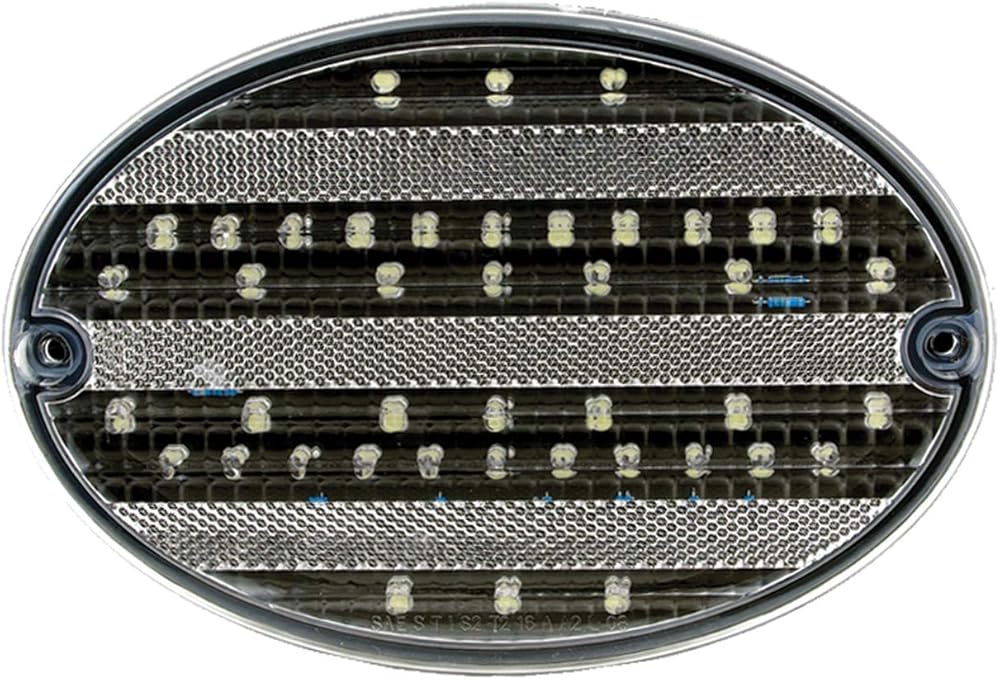 Light, backup, 42 white diode, elliptical, clear lens, black base, rated: STI s2 t2 16 a 00; surface mount;  reflective lens; backup light lens color: clear; tested voltage: 12.8 Volts ;Material: Polycarbonate lens abs housing.