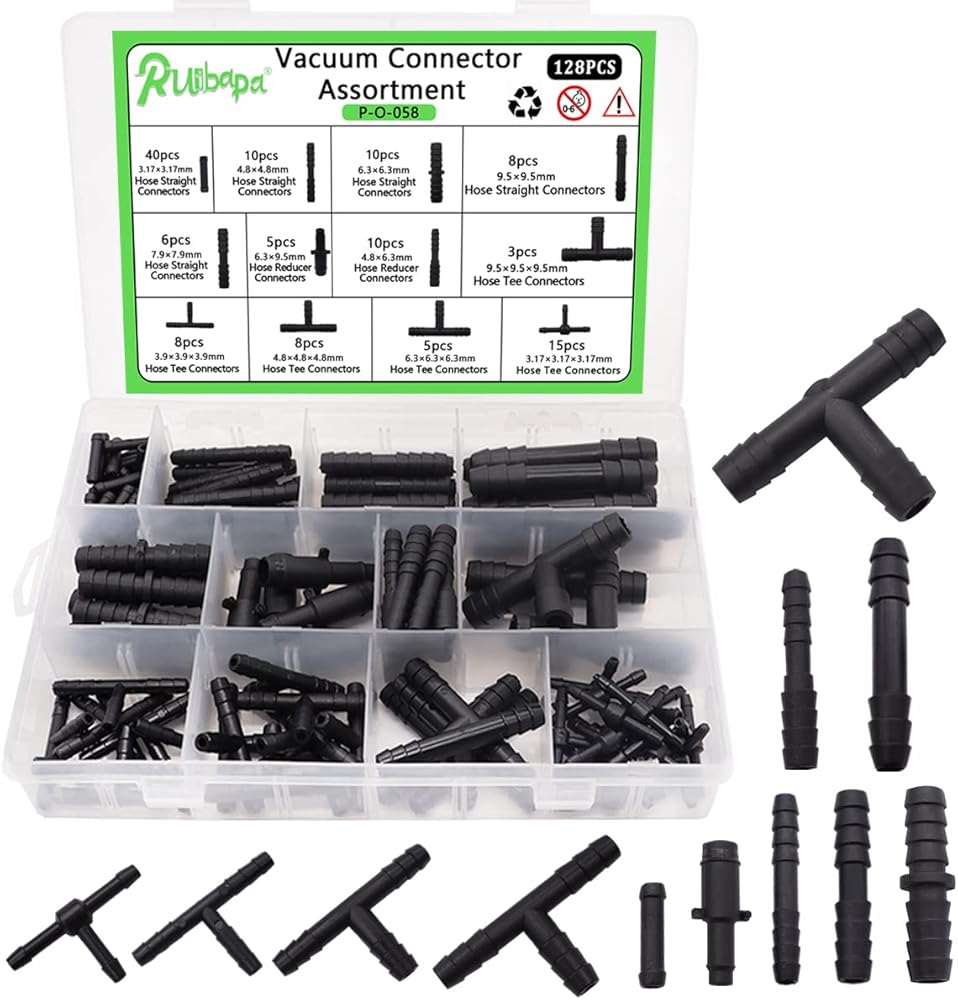 • 128pcs vacuum connectors are classified into 12 kinds of vacuum connectors of different sizes, which are divided into three types: tee, straight-through and reducer. The products are packaged in a transparent box for easy carrying and storage.