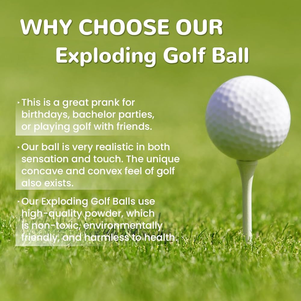 【كرات الجولف المتفجرة المزحة】هذه مزحة رائعة لأعياد الميلاد أو حفلات توديع العزوبية أو لعب الجولف مع الأصدقاء. تضمن كل كرة تجربة خداع لا تُنسى، حيث تجلب المفاجآت والترفيه لأصدقائك.