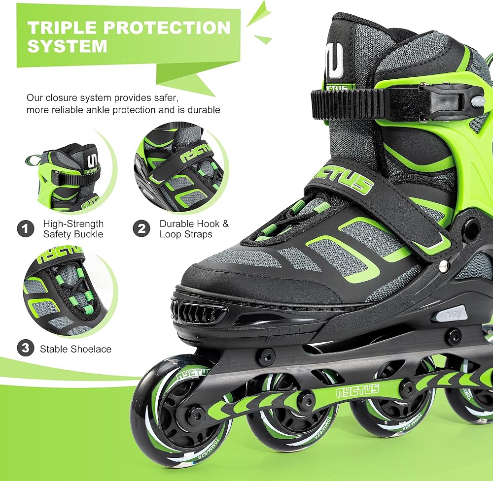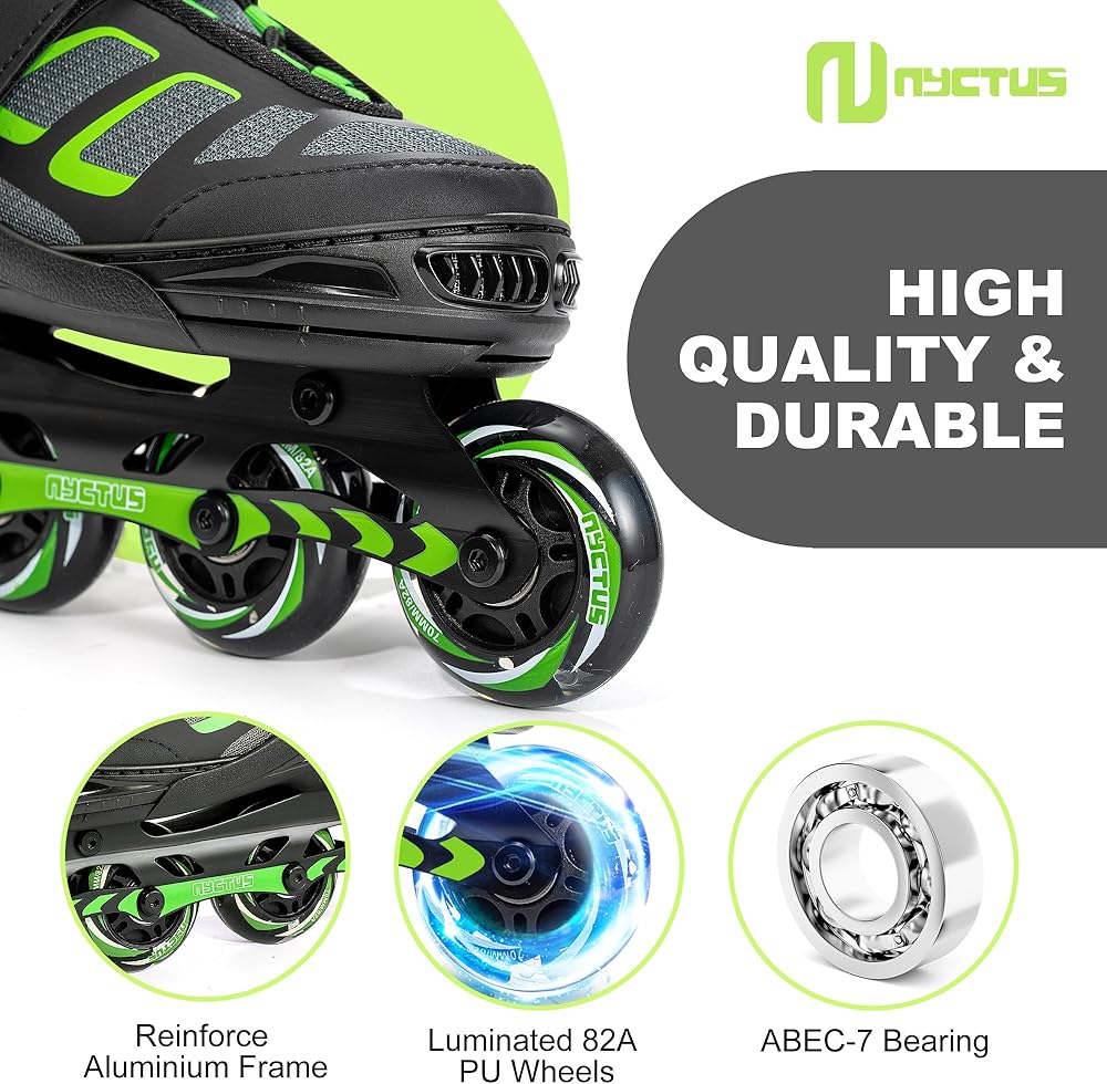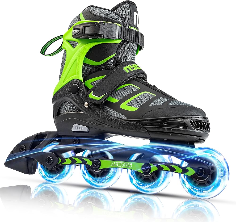 • 【8 عجلات مضيئة للتزلج على الجليد 】 تأتي أحذية التزلج المضمنة من NYCTUS مع 8 عجلات مضيئة تضيء تلقائيًا عند التزلج. يتم تشغيل الأضواء بواسطة العجلات المتداول ولا حاجة إلى بطاريات! وميض البرق في الظلام!