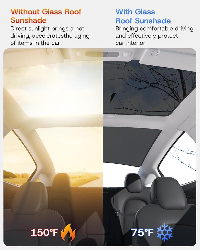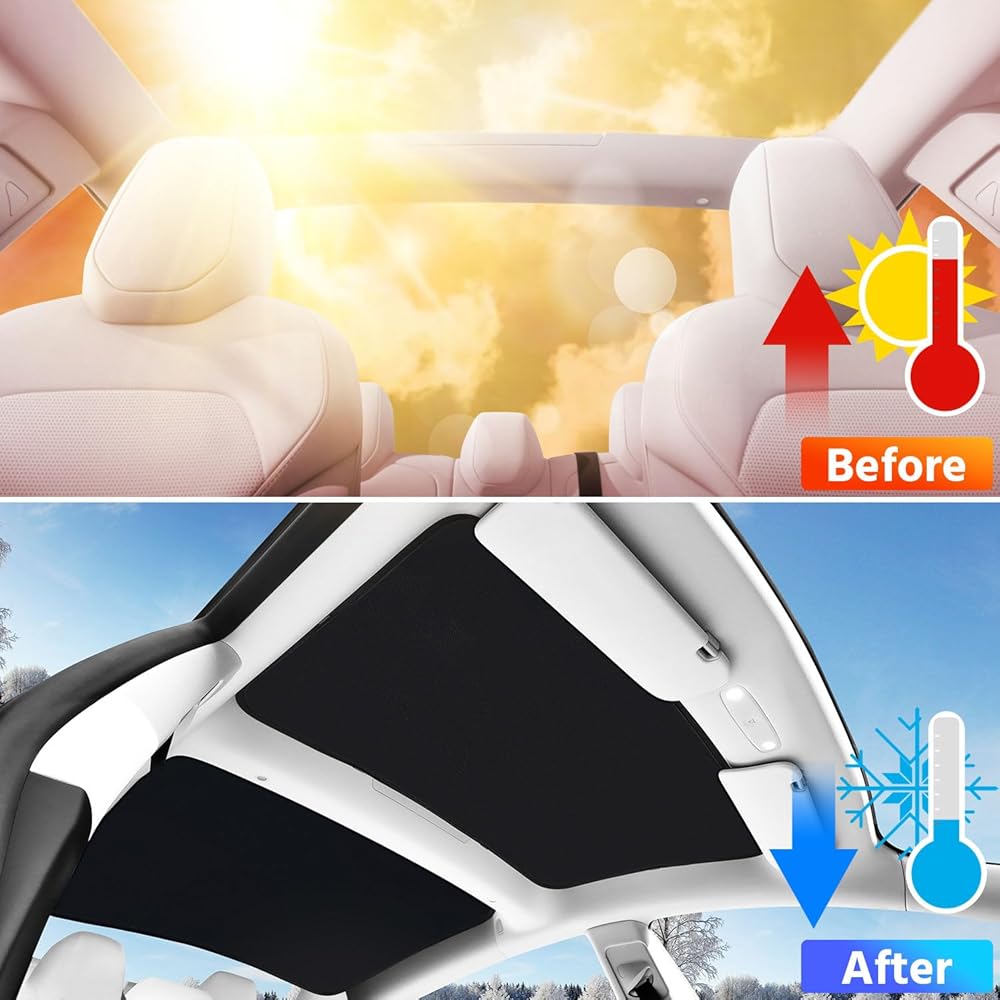 【Reduce interior temperature】The upgraded version Tesla Model 3 roof shade can isolate over 99% of ultraviolet radiation, reduce the temperature inside the car effectively and maximizing the protection of the car interior decorations. The fabric has been comprehensively improved with better shading effect. (The silver coating cloth can be installed as required)