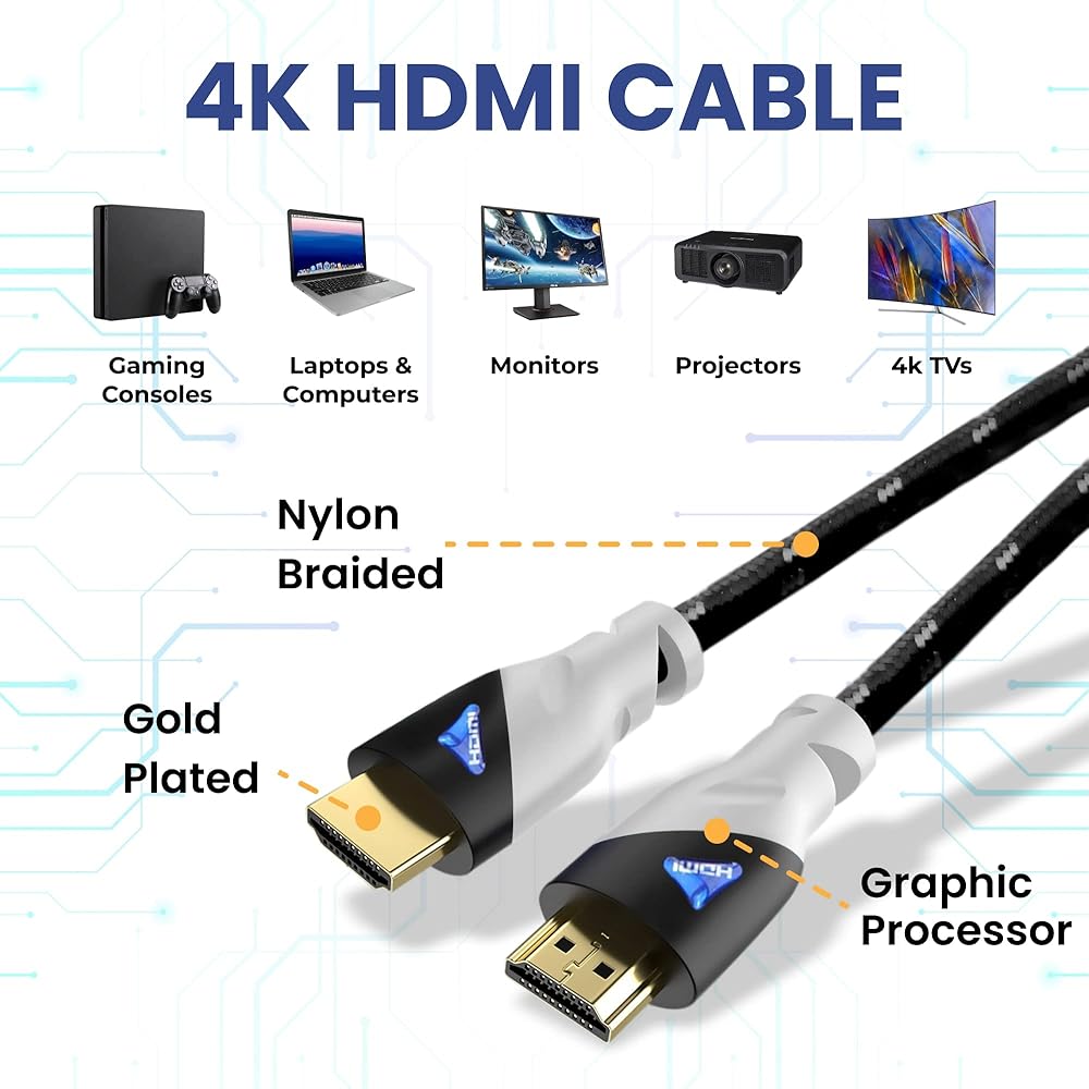 • Turn Your Home into An Entertainment Center - Whether you're looking to turn your living room into a movie theatre or make your gaming experience bigger and better, our HDMI 4K ultra HD cable will get you there
