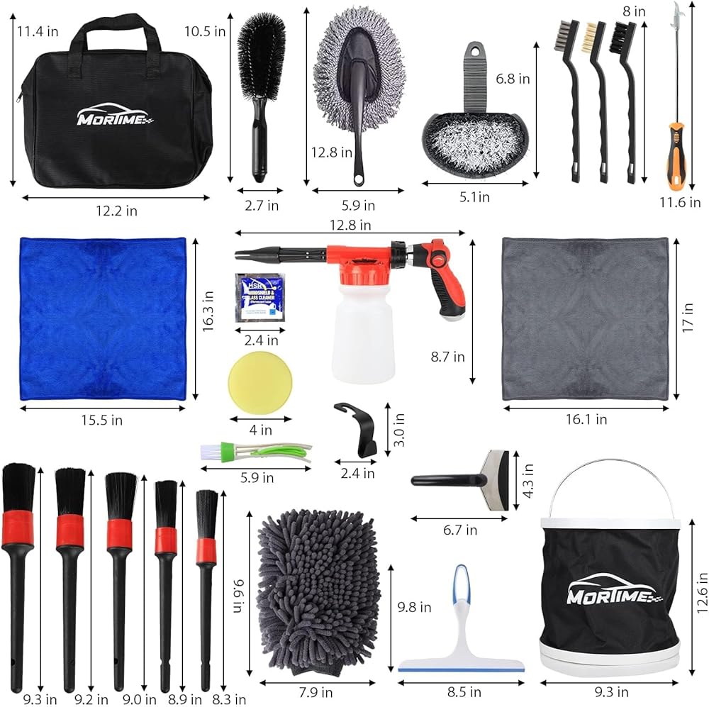 مجموعة تنظيف متعددة الاستخدامات - 4 خطافات لمسند رأس مقعد السيارة تسمح لك بتعليق مجموعة تنظيف السيارة MorTime بسهولة، كما تسمح لك حقيبة التخزين المتينة بسحاب بتنظيم مساحة سيارتك بسرعة. مجموعة التنظيف مورتايم ليست مثالية فقط لغسل الأسطح الخارجية والداخلية للسيارات، ولكن أيضًا للمرحاض والمطبخ وحوض الاستحمام وما إلى ذلك.