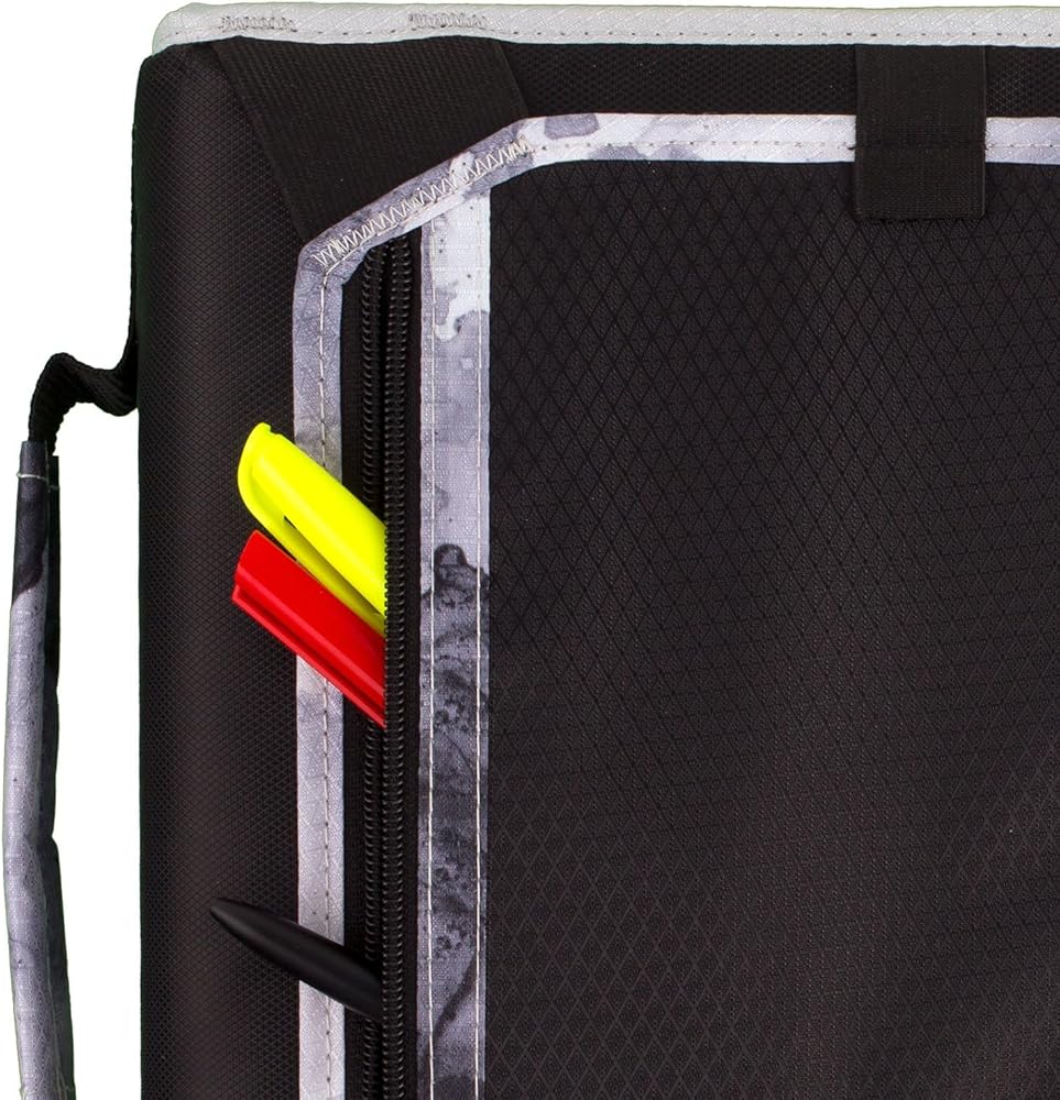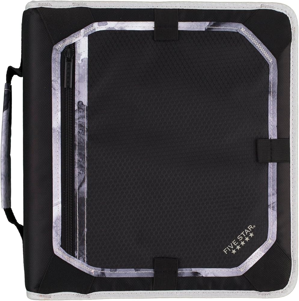 LASTS ALL YEAR. GUARANTEED!* Binder is built strong to keep up with you all year long. Binder has a full zipper closure and handle to easily carry between classes. Expansion panel on the outside of the binder allows you to store and access textbooks, notebooks and more without unzipping the binder. Get organized with 5-tab expanding file that holds up to 200 loose sheets. 3-ring fixture holds up to 380 letter size sheets.** Pocket securely stores supplies. Also includes a micro-mesh pocket with zipper closure. Full zipper closure and carrying handle allows you to be on the go. Measures 2 1/2" x 12 3/4" x 12". Available in Black/Gray. *Guarantee is valid for one year from purchase date. Does not cover misuse. Go to fivestarbuiltstrong.com for details. **Sheet count capacity is measured by using 15 lb. Filler Paper.