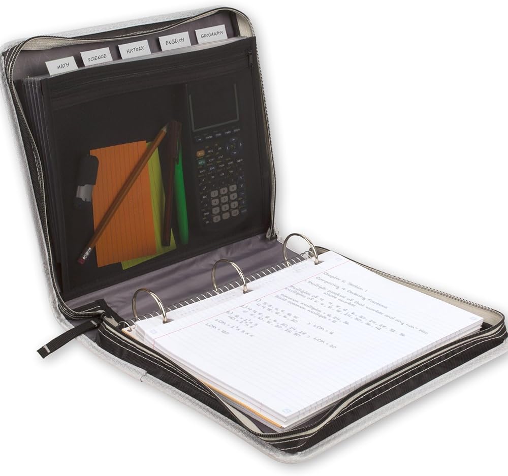 • LASTS ALL YEAR. GUARANTEED! Binder is built strong to keep up with you all year long. Binder has a full zipper closure and handle to easily carry between classes.