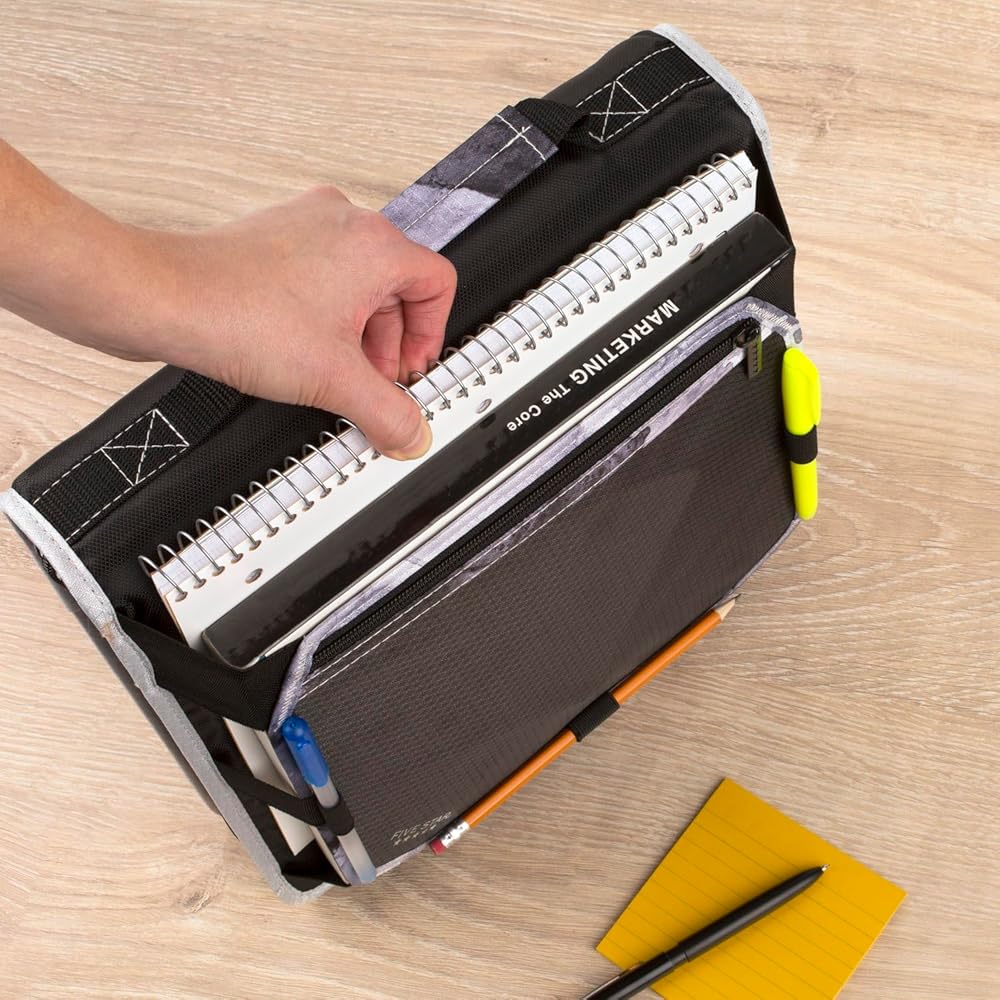 • Expansion panel on the outside of the binder allows you to store and access textbooks, notebooks and more without unzipping the binder