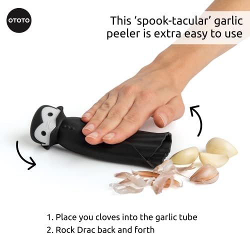 تعرف على Drac N 'Roll - يتأرجح ذهابًا وإيابًا، دراك أنبوب الثوم مصاص الدماء الرائع يذبح ويقشر كل فص في المنطقة. صُنعت مقشرة الثوم السيليكون هذه من تصميم OTOTO Studio الحائز على جائزة التصميم، مما يجعل تقشير الثوم أمرًا سهلاً للغاية.
