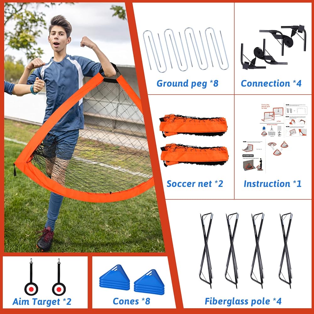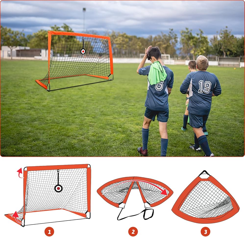 مجموعة أهداف كرة القدم المحمولة: خذ شباك المرمى في أي مكان تقريبًا وابدأ اللعب. تدرب بسرعة وسهولة مع شبكات كرة القدم المحمولة التي تعتبر رائعة للفرق، والتدريب المنزلي حيث يمكنك استخدام شبكات كرة القدم في الفناء الخلفي أو الحديقة أو حتى اصطحابها إلى الشاطئ.