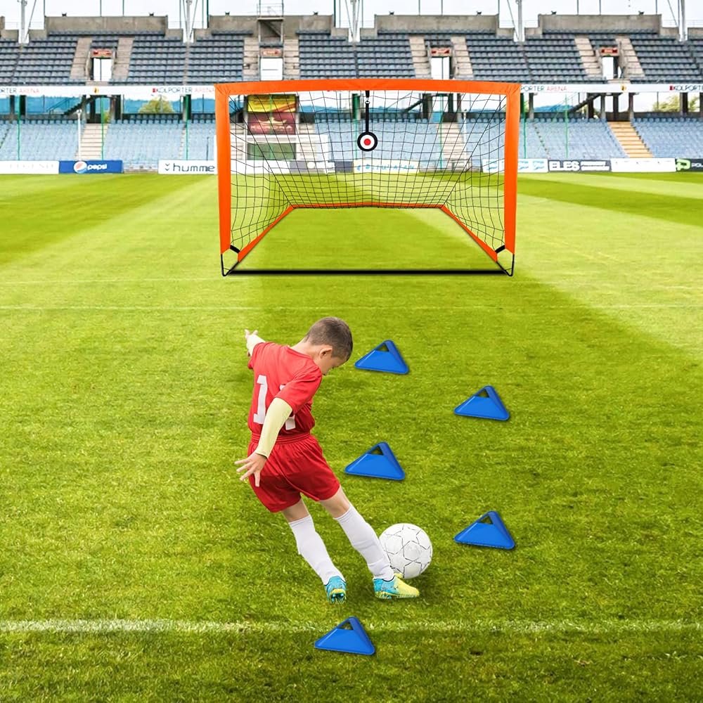 مثالية لتدريب كرة القدم: تأتي مع هدفين للتصويب، و8 مخاريط أقراص ستساعد على تطوير روح الفريق لدى المراهقين ومهارات كرة القدم وتجلب السعادة للناس أيضًا.