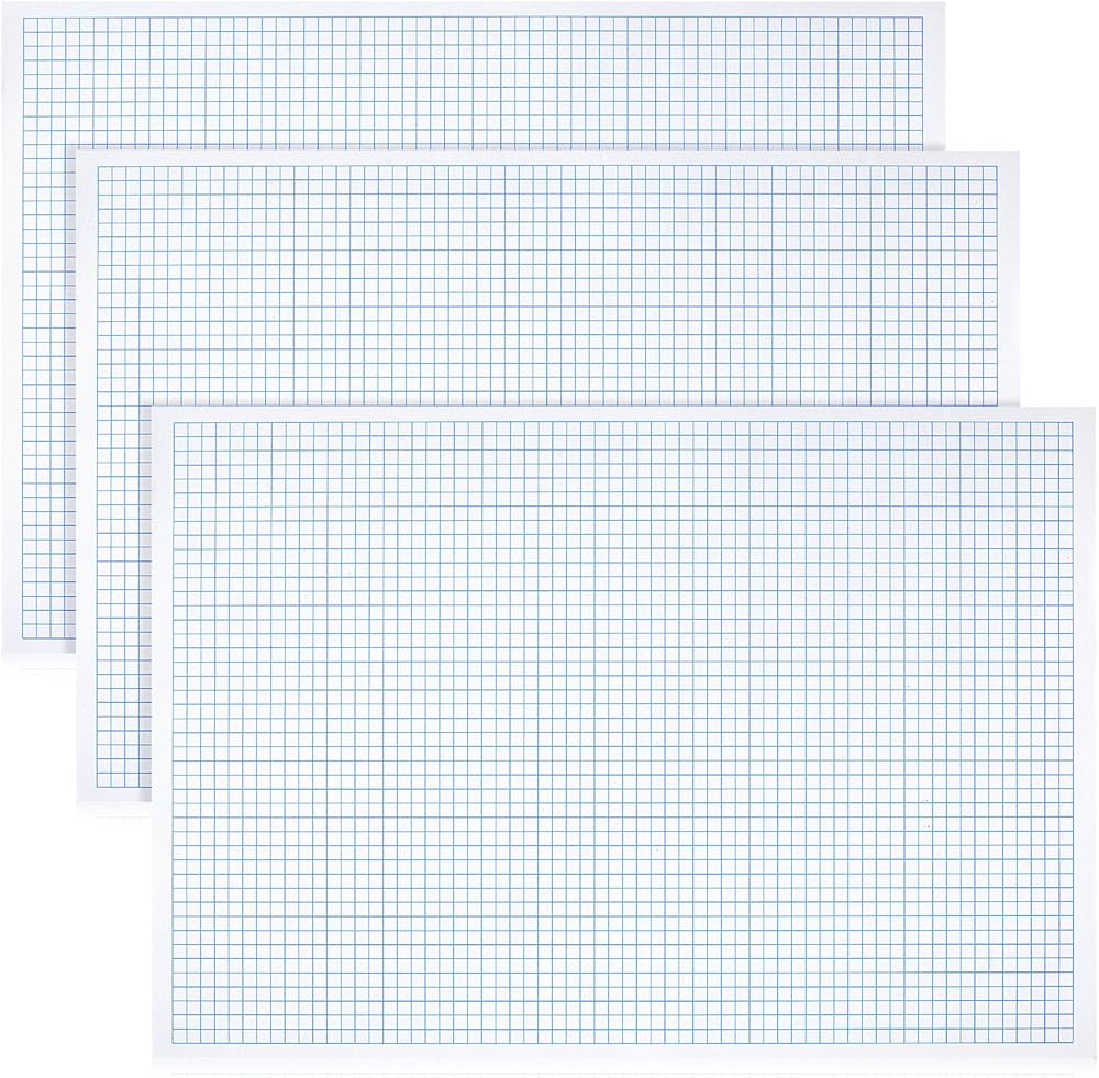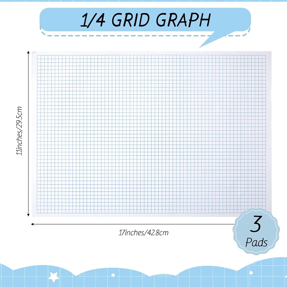 Teling 3 وسادات ورق رسم بياني مخطط 17 بوصة × 11 بوصة، 50 ورقة لكل لوحة لوحة ورق شبكية 100 جرام في المتر المربع ورقة هندسة صياغة مع وسادة للمهندس المعماري ورسام الرياضيات