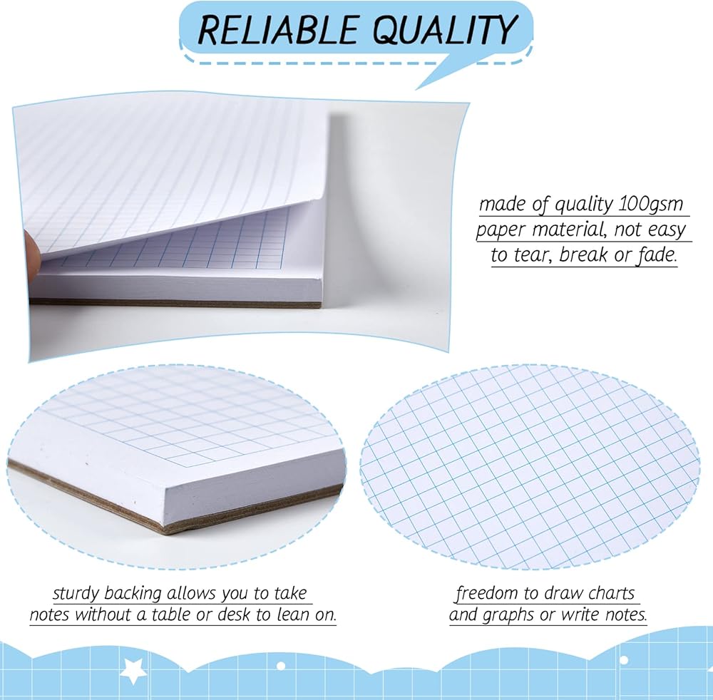 • Functional Design: the back of the engineering paper is equipped with a sturdy backing, 2 mm thick, made of quality card stock material, which provides extra stability when you write, draw and design, allowing you to take notes without a table or desk