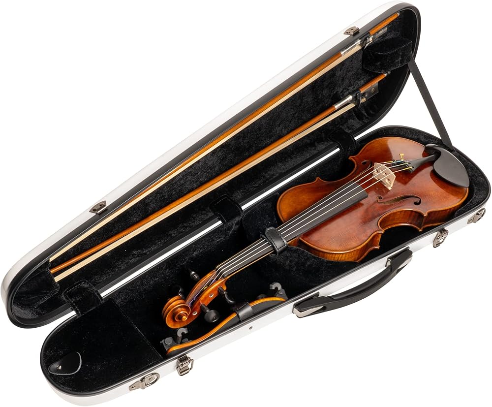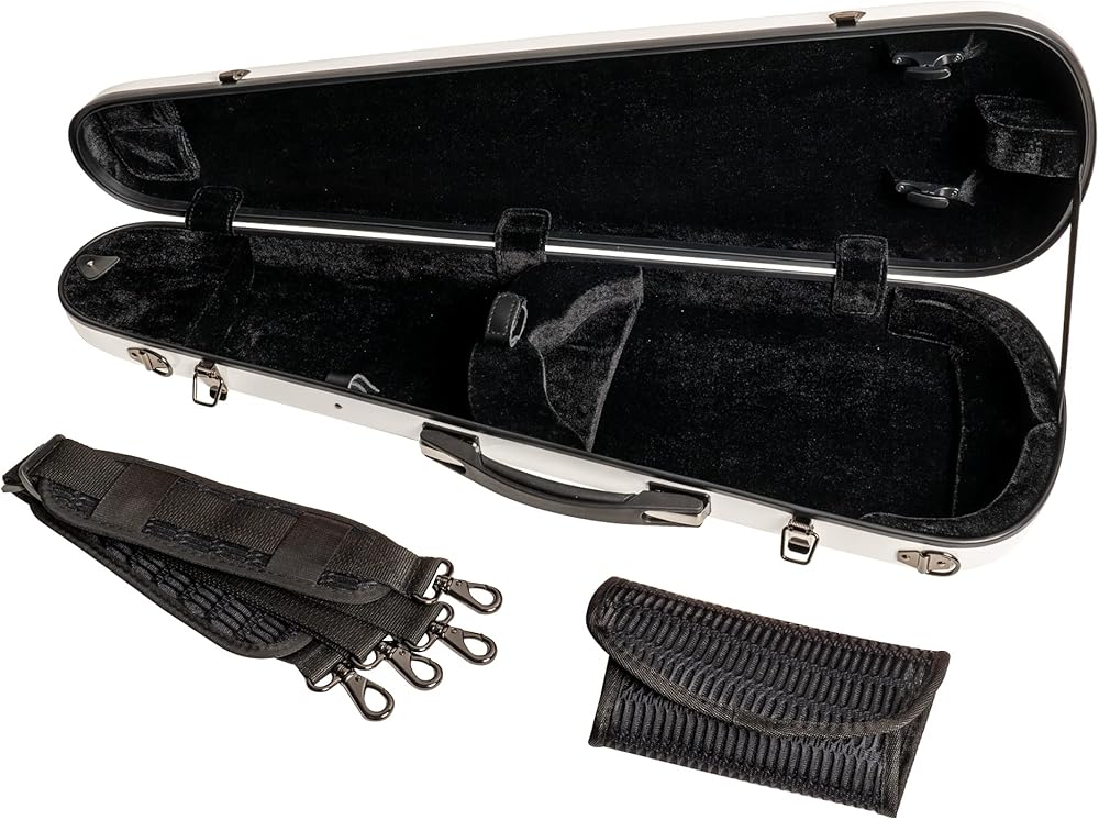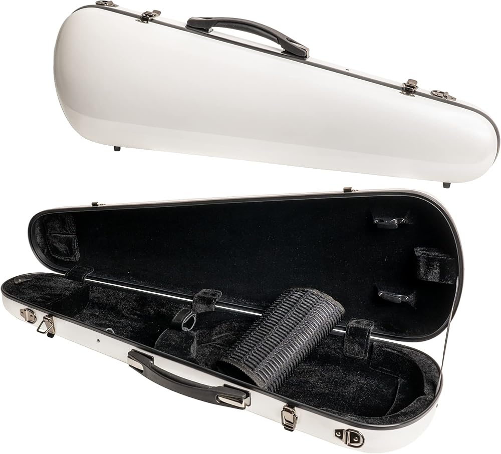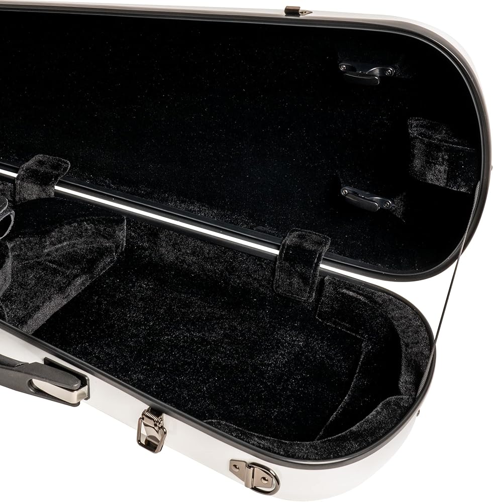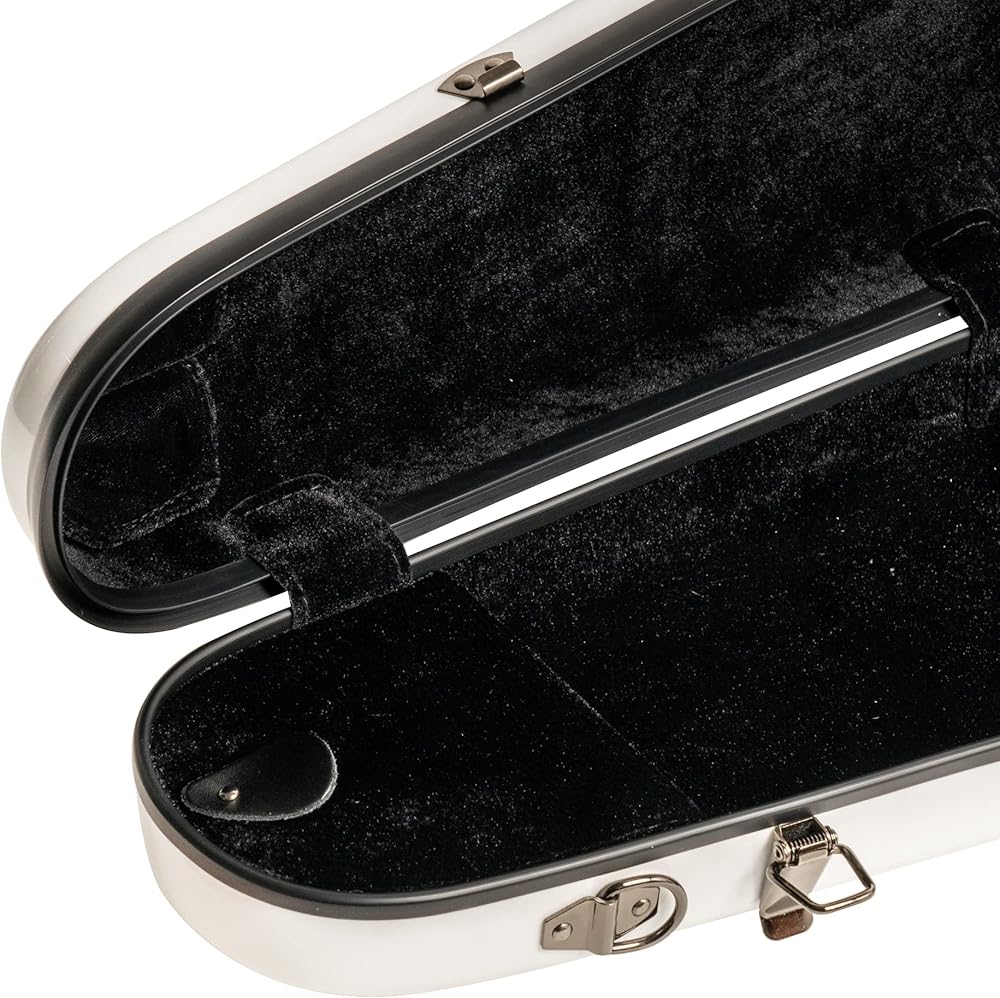 Mi & VI NG-7002S Classic Hard Fiberglass Violin Case (الحجم الكامل) 4/4 مع أحزمة حمل | خفيف الوزن | قضية قشرة صعبة للكمان (أبيض)