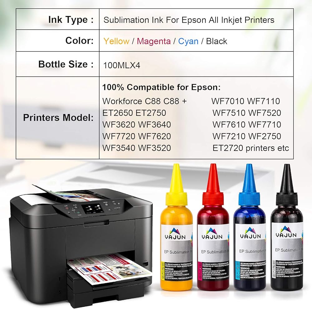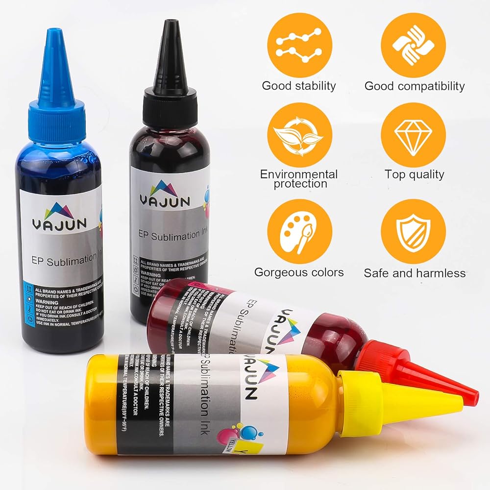 【متوافق تمامًا】: إعادة تعبئة حبر التسامي فاجون لجميع طابعات التسامي من إبسون. عبوات حبر طباعة نقل التسامي عالية الجودة للطابعة ET4700 ET2720 ET2750 ET2760 ET15000 ET4760 ET3760 ET2650 ET3710 ET16600 WF2860 WF2760 WF7710 C88 C88+.