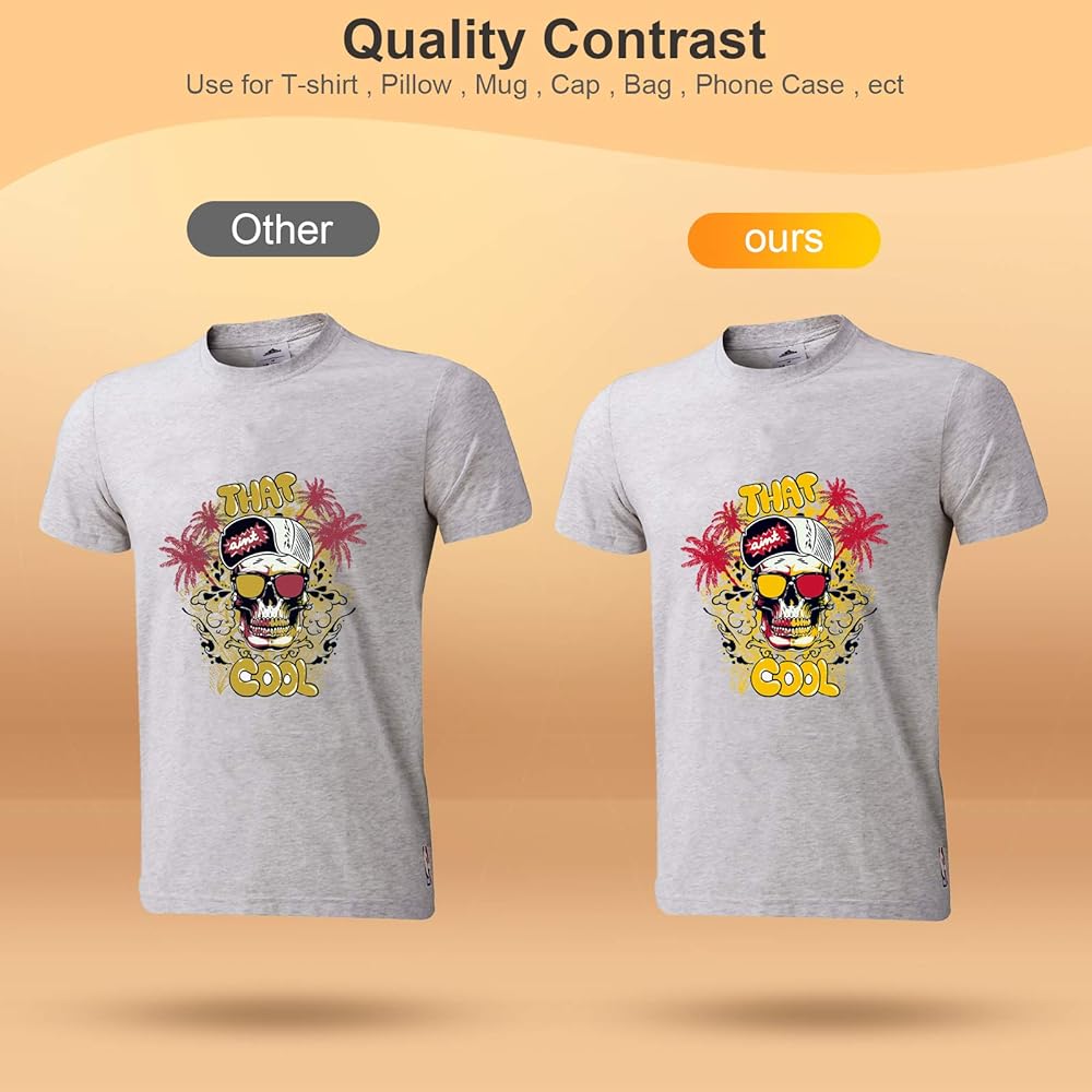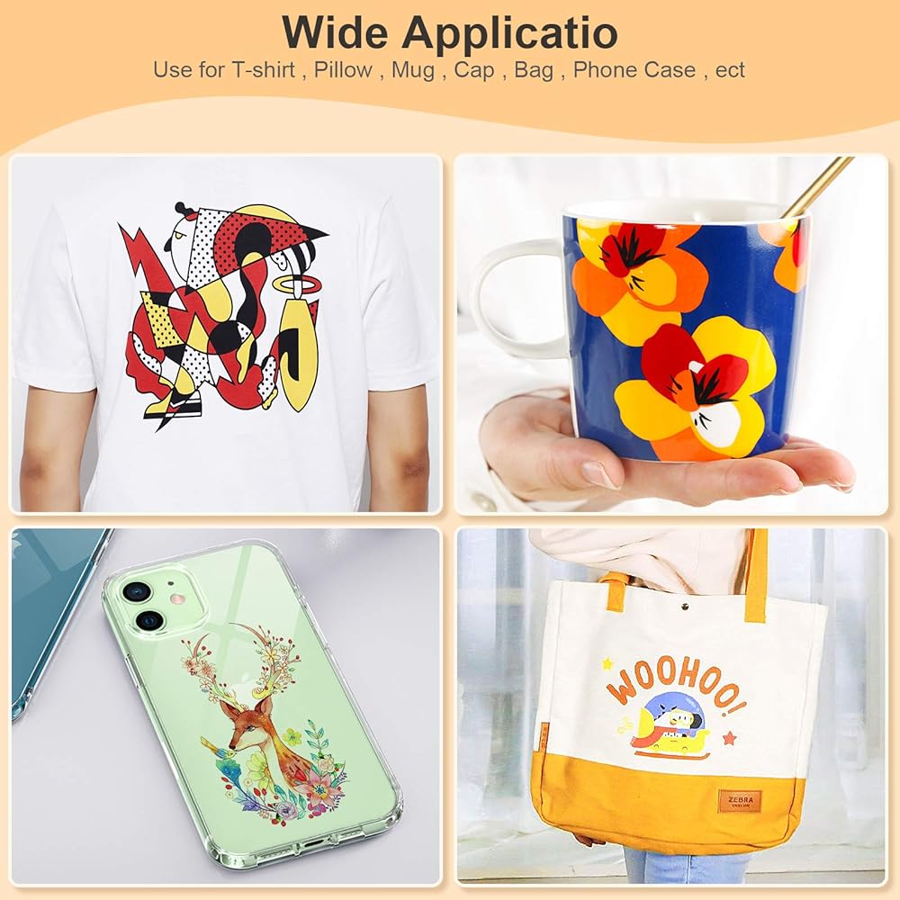 【هدية ذاتية الصنع】: يتوفر ملف تعريف ICC. حبر طابعة النقل الحراري مناسب للقمصان، والقماش، وأغطية الوسائد، وأكواب الأكواب، واللحاف، والغرز المتقاطعة، والأحذية، والقبعات، والسيراميك، والصناديق، والحقائب، والقماش المزخرف، والعلم، واللافتة وما إلى ذلك. حقق أفكارك في الحياة و تقديم الهدايا DIY الخاصة بك لمن حولك.