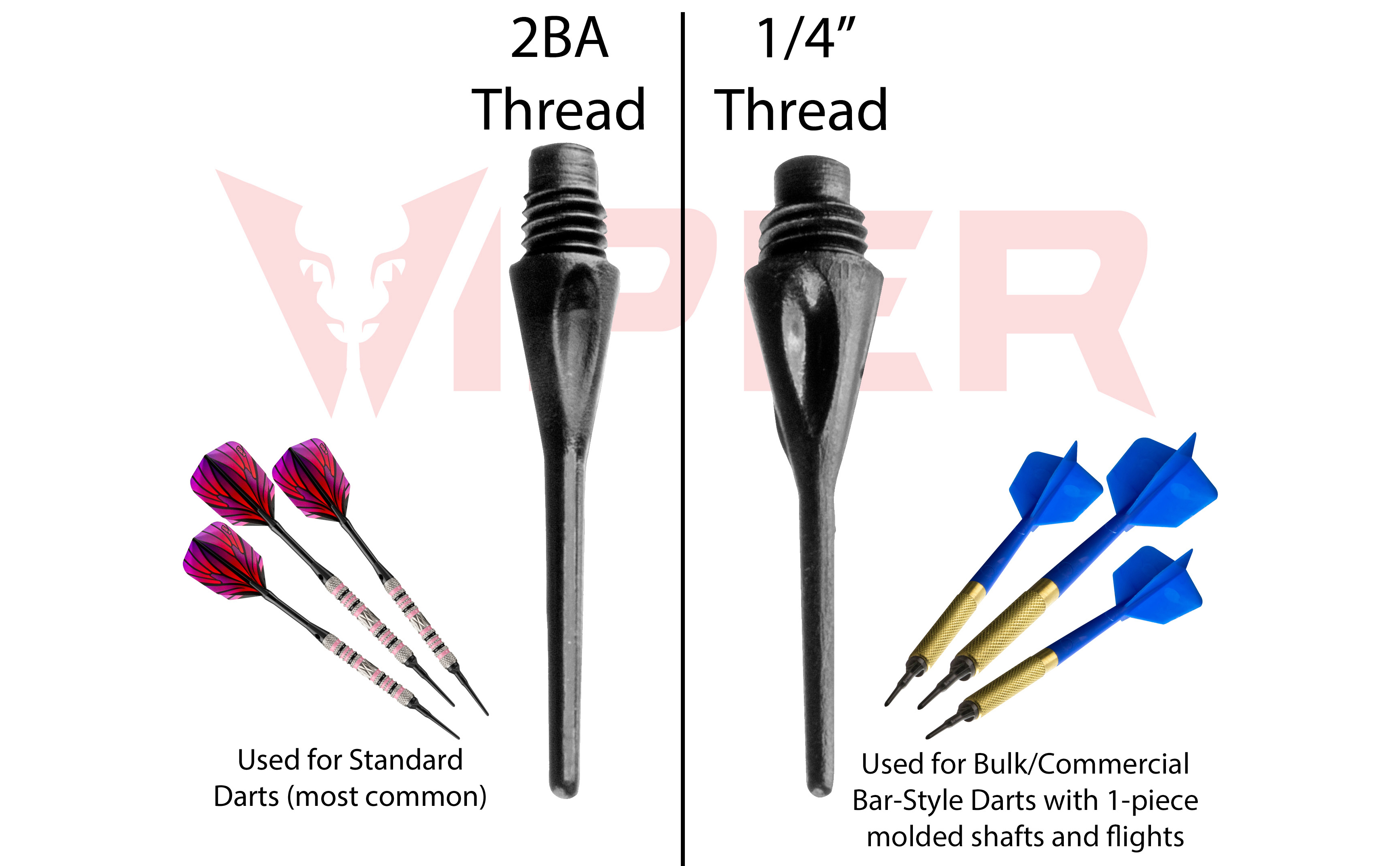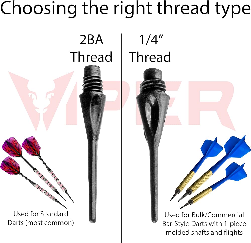 Viper 1/4" Diamond soft tip dart points are compatible with all 1/4" size dart corkscrew threads