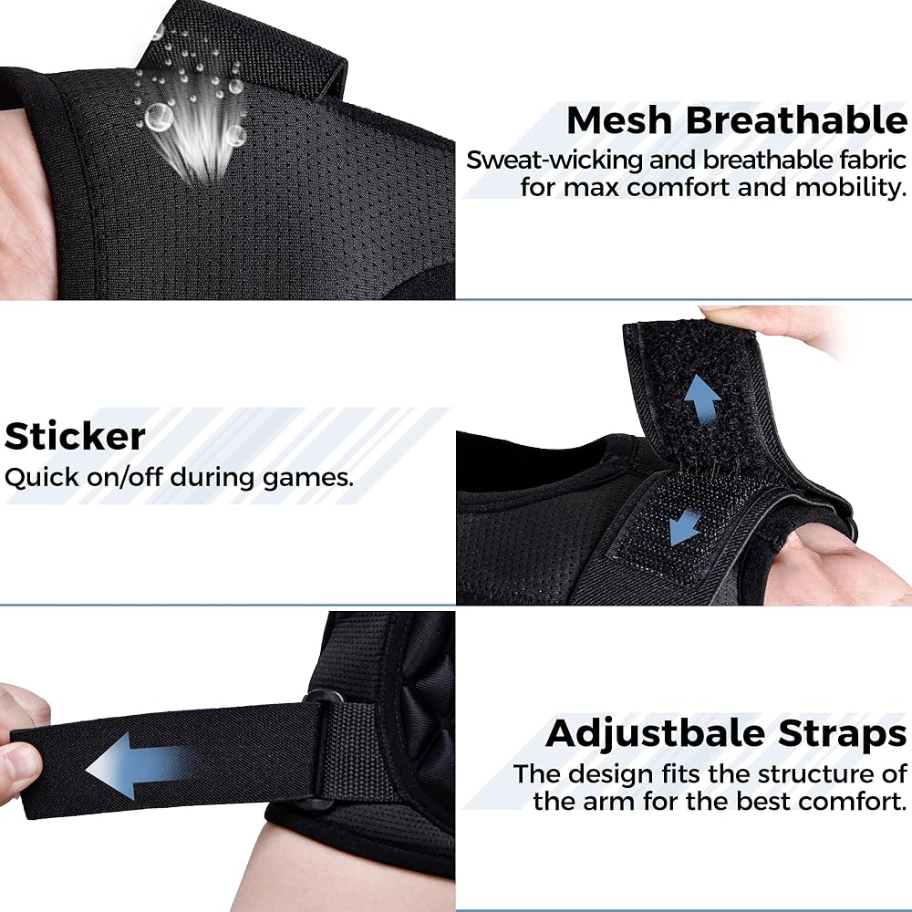 أشرطة قابلة للتعديل: أحزمة قابلة للتعديل تلبي الحاجة إلى ملاءمة متعددة الاستخدامات، وهذا المنتج يسمح لك بارتدائها وخلعها بسرعة أثناء اللعبة. يرجى الرجوع إلى جدول مقاسات المنتج واختيار المقاس المناسب. يمكن للأشرطة القابلة للتعديل أن تلبي احتياجات محيط الذراع للأولاد والبنات والرجال والنساء من الشباب والمراهقين إلى البالغين.