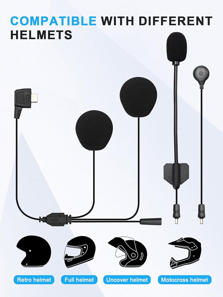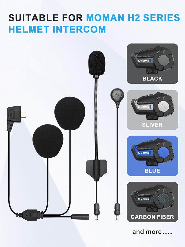 Moman H2 دراجة نارية سماعة رأس لجهاز الاتصال الداخلي 【ميكروفون ومشبك صلب وناعم 】 مجموعة ملحقات أنظمة الاتصالات