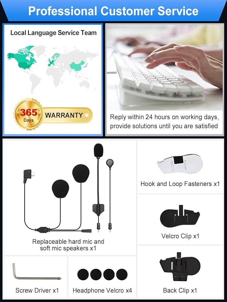 Moman H2 Motorcycles Intercom Headset 【Hard&Soft Microphone&Clip】 Communication Systems Accessories Kit