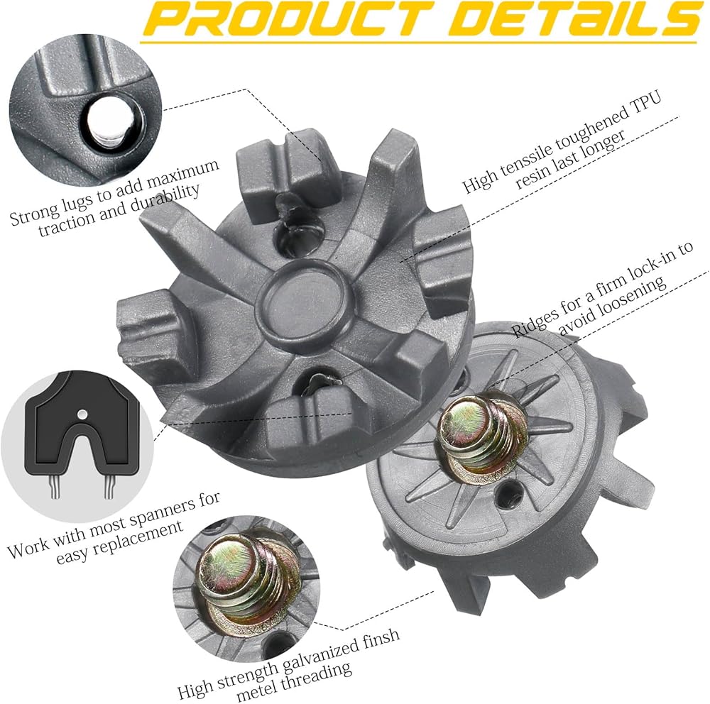 Easy to Use and Maintain: with the included spanner, installing our golf shoe spikes is easy; Just turn right when installing and left to remove; Additionally, when the spikes become dirty, they're easy to clean, offering a convenient and hassle free maintenance