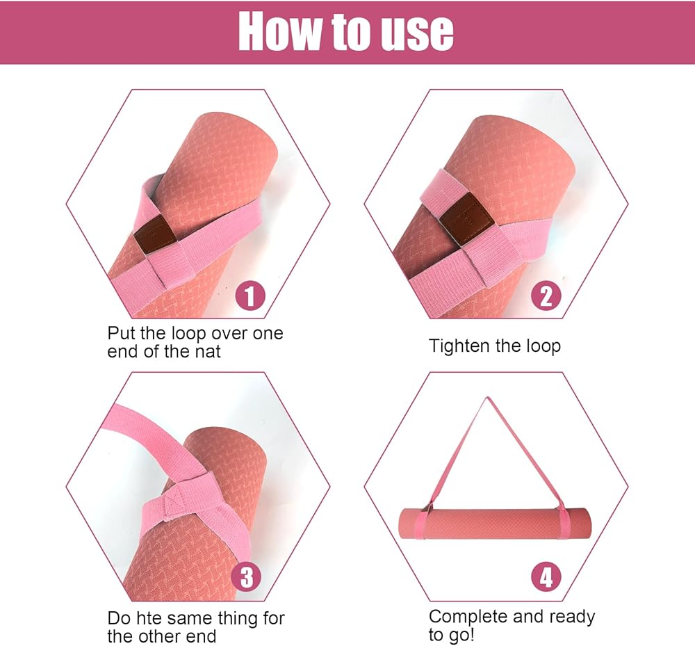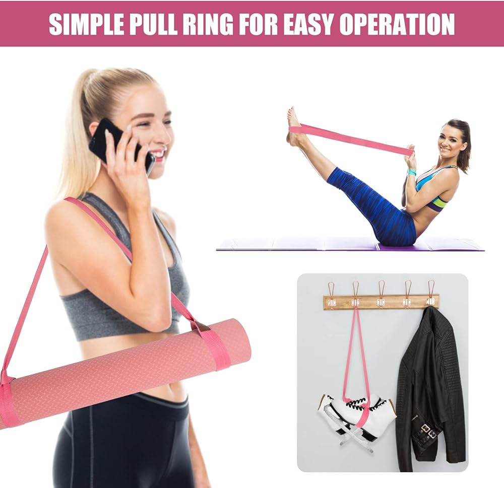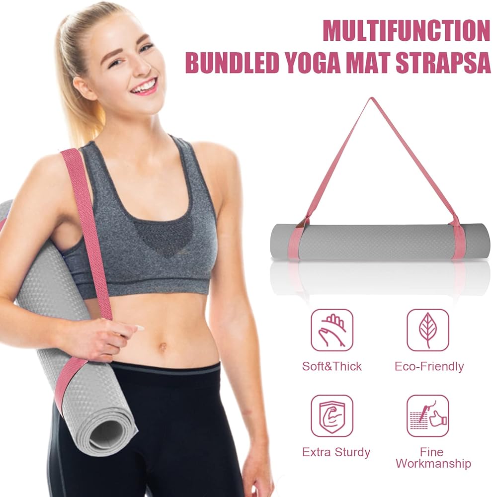 حزام بساط اليوجا، حامل بساط اليوجا، أشرطة حامل بساط اليوجا وبساط التمرين (63 بوصة، مسحوق البطيخ)