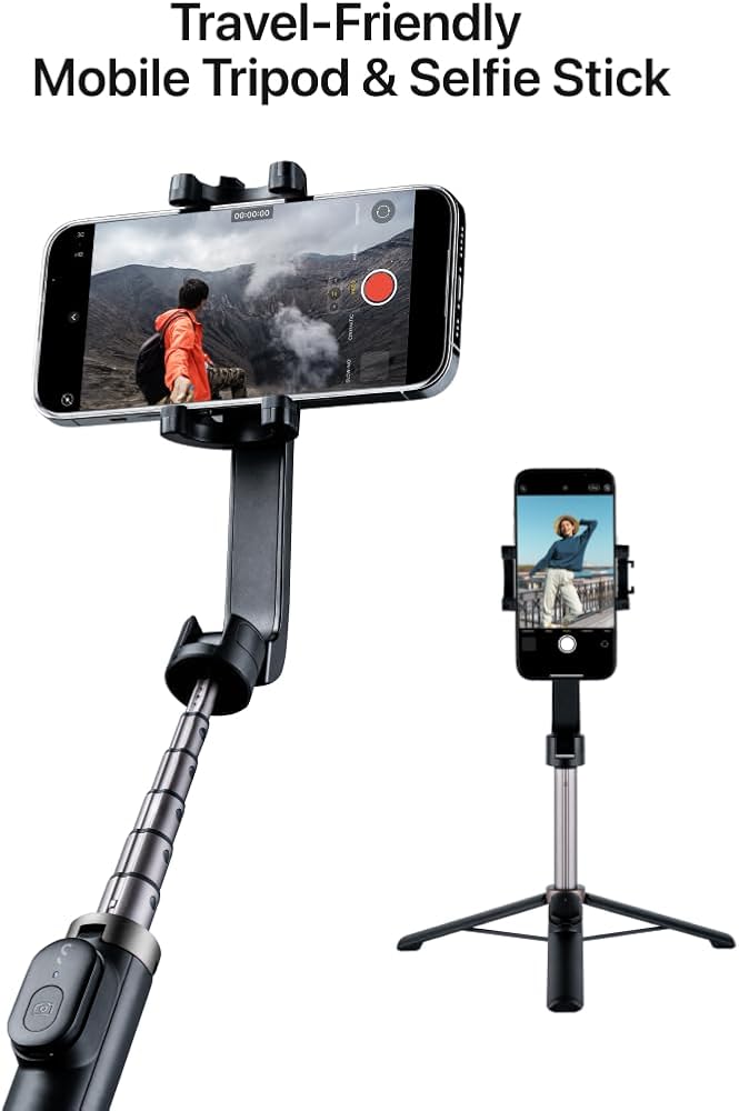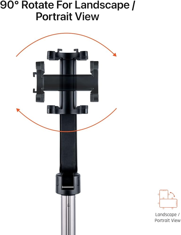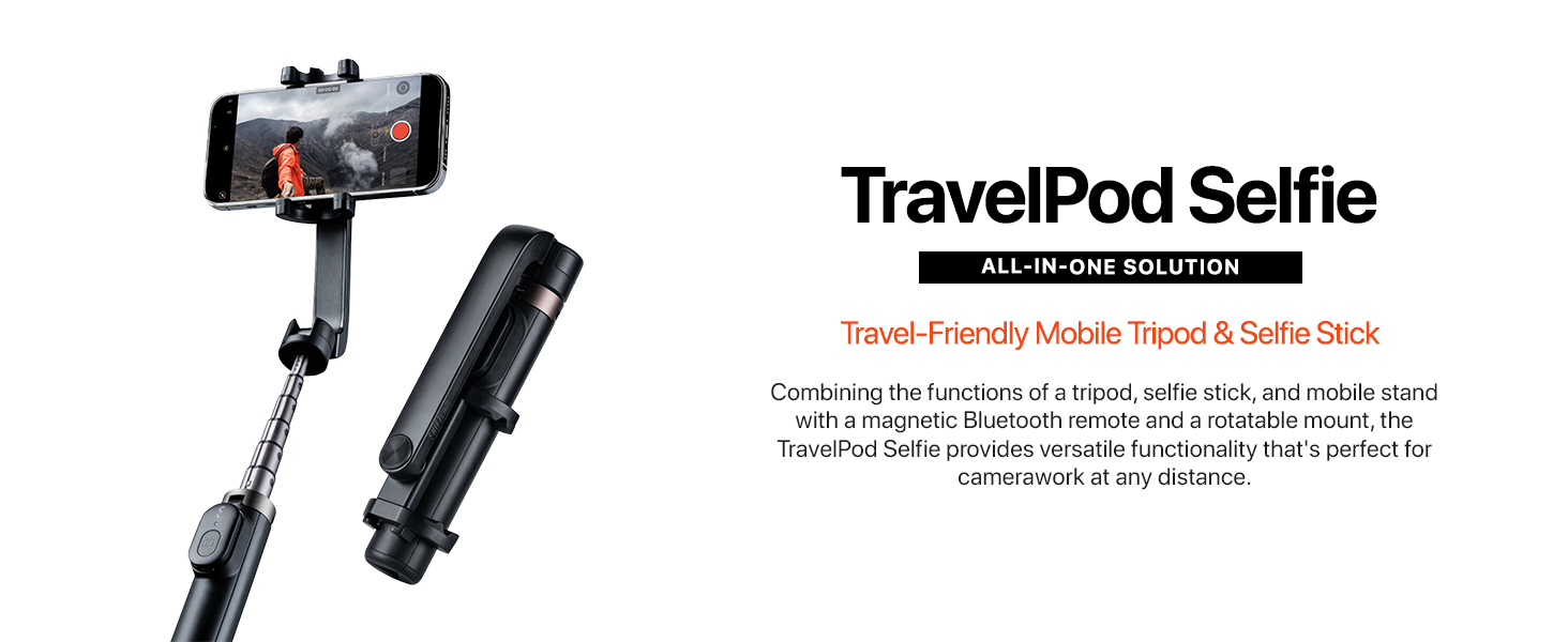 زوايا قابلة للتعديل: يوفر جهاز TravelPod Selfie دورانًا بمقدار 90 درجة للمناظر الطبيعية والصور، مما يضمن عدم تفويت أي لقطة مثالية. بالإضافة إلى ذلك، تتيح لك ميزة الإمالة بمقدار 200 درجة العثور على أفضل زاوية للصور ومقاطع الفيديو الخاصة بك.