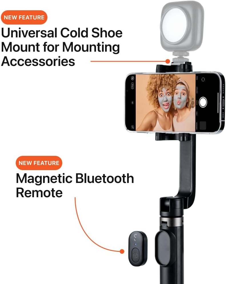 حامل حذاء بارد عالمي: مزود بحامل حذاء بارد، يمكّنك جهاز TravelPod Selfie من تركيب العديد من الملحقات مثل الميكروفونات أو مصابيح LED أو الفلاش الخارجي، مما يعزز جودة المحتوى الخاص بك.