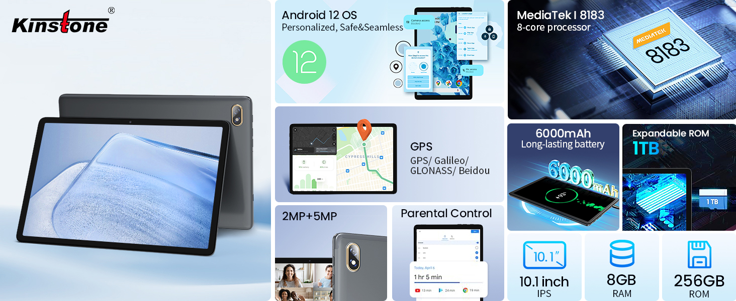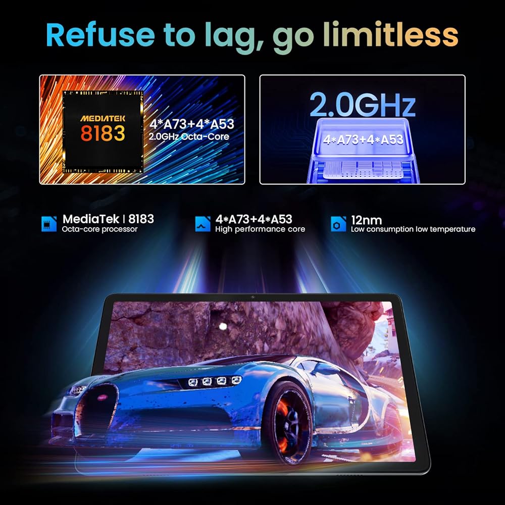 【أداء مثالي مطور】جهاز Android اللوحي مقاس 10.1 بوصة مزود بمعالج MTK8183 ثماني النواة القوي، مما يوفر سرعة تشغيل فائقة السرعة. توفر الشاشة عالية الدقة 1280*800 جودة صورة عالية الوضوح وسلسة.