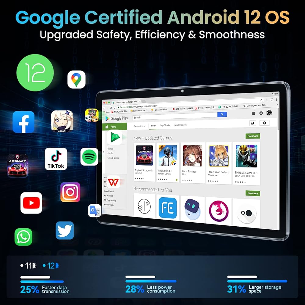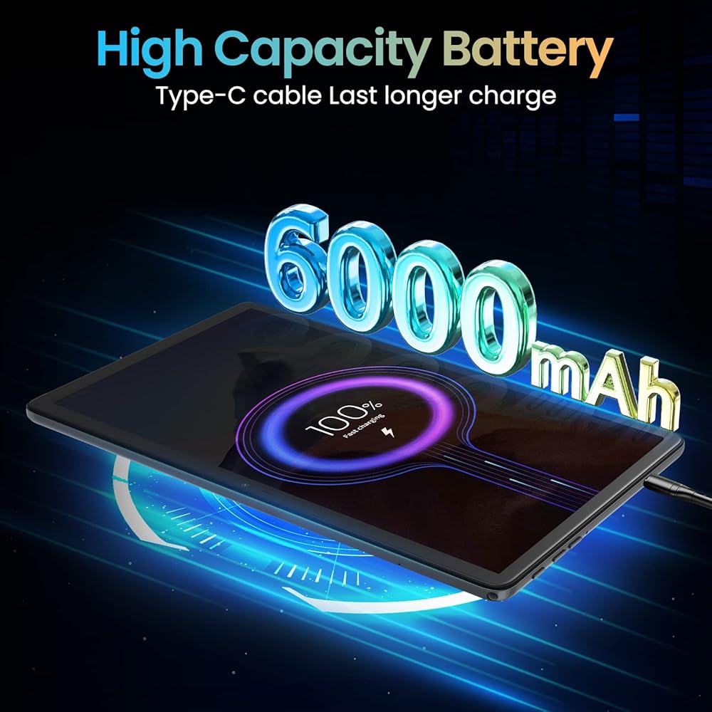 【عمر بطارية طويل】سعة البطارية 6000 مللي أمبير كافية للاستخدام اليومي. يمكن أن يستمر لمدة تصل إلى أسبوع في وضع الاستعداد العادي، أو تشغيل الألعاب أو مشاهدة مقاطع الفيديو لمدة 6 ساعات، والاستماع إلى الأغاني لمدة 8 ساعات، وتصفح الويب لمدة 12 ساعة. سواء كنت تستخدمه للعمل أو الترفيه، فهذا الجهاز اللوحي يعد خيارًا جيدًا.