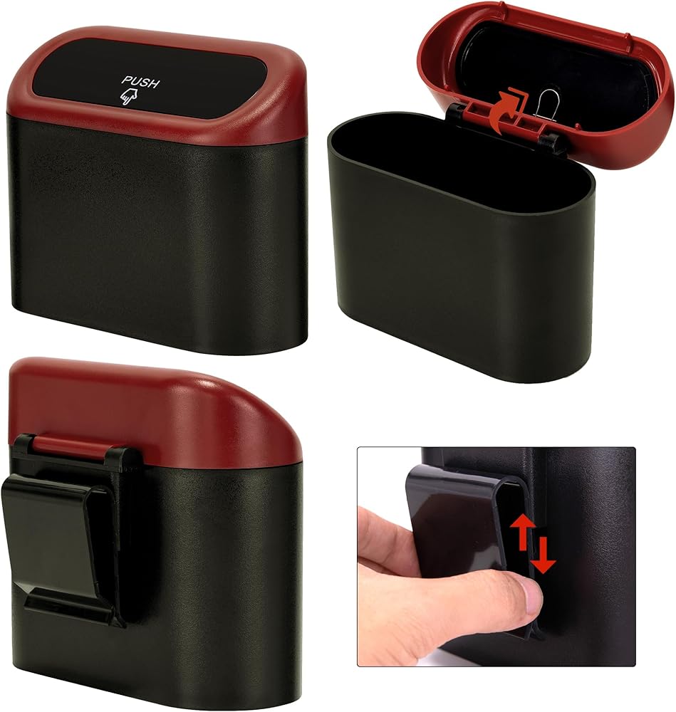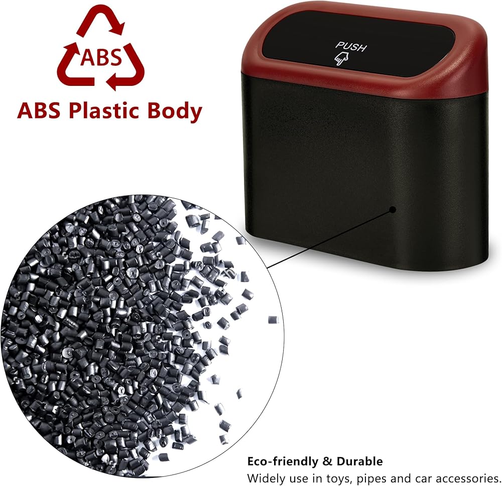 [سهلة التنظيف] - سلة مهملات السيارة ذات الغطاء مصنوعة من بلاستيك أكريلونتريل بوتادين ستايرين، والذي يمكن أن يحافظ على أداء سلة المهملات بشكل جيد وليس من السهل تشويهه. مع غطاء كبير مفتوح بحيث يمكن تفريغها وتنظيفها بسهولة على طول الطريق. يمكنك بسهولة تنظيف صندوق قمامة السيارة الصغير هذا بالماء والصابون.