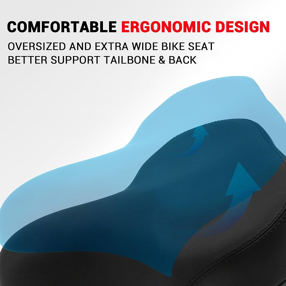 مقعد دراجة كبير الحجم من Himiway للنساء والرجال، وسادة مقعد دراجة عريضة فائقة النعومة، سرج مقعد دراجة مريح وجيد التهوية متوافق مع Peloton، والقرطاسية، والتمرين، والجبال، ودراجات الطريق (#1)