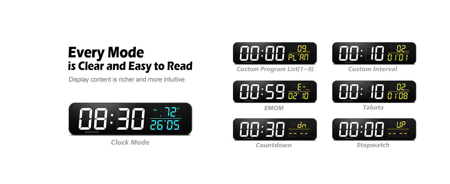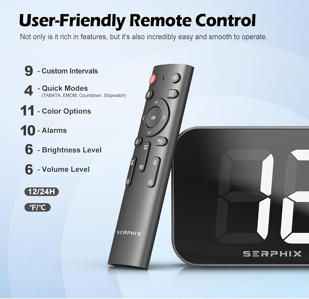 【أوضاع توقيت متعددة】يمكنها تخزين ما يصل إلى 9 برامج فاصلة مخصصة وتوفر 4 أوضاع سريعة (تاباتا، إيموم، العد التنازلي، ساعة التوقف). يتم التحكم فيه بسهولة باستخدام جهاز تحكم عن بعد سهل الاستخدام، وهو مصمم لتحقيق البساطة والإعداد السهل.