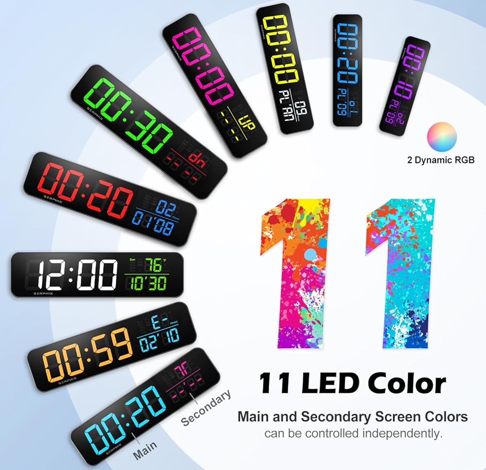 【11 خيار لون LED】يوفر 9 ألوان شائعة وخيارين لون RGB ديناميكي. يمكن التحكم في ألوان الشاشة الرئيسية والشاشة الثانوية بشكل مستقل. أرقام LED تصل إلى 2.7 بوصة، وتعديل السطوع بـ 6 مستويات.